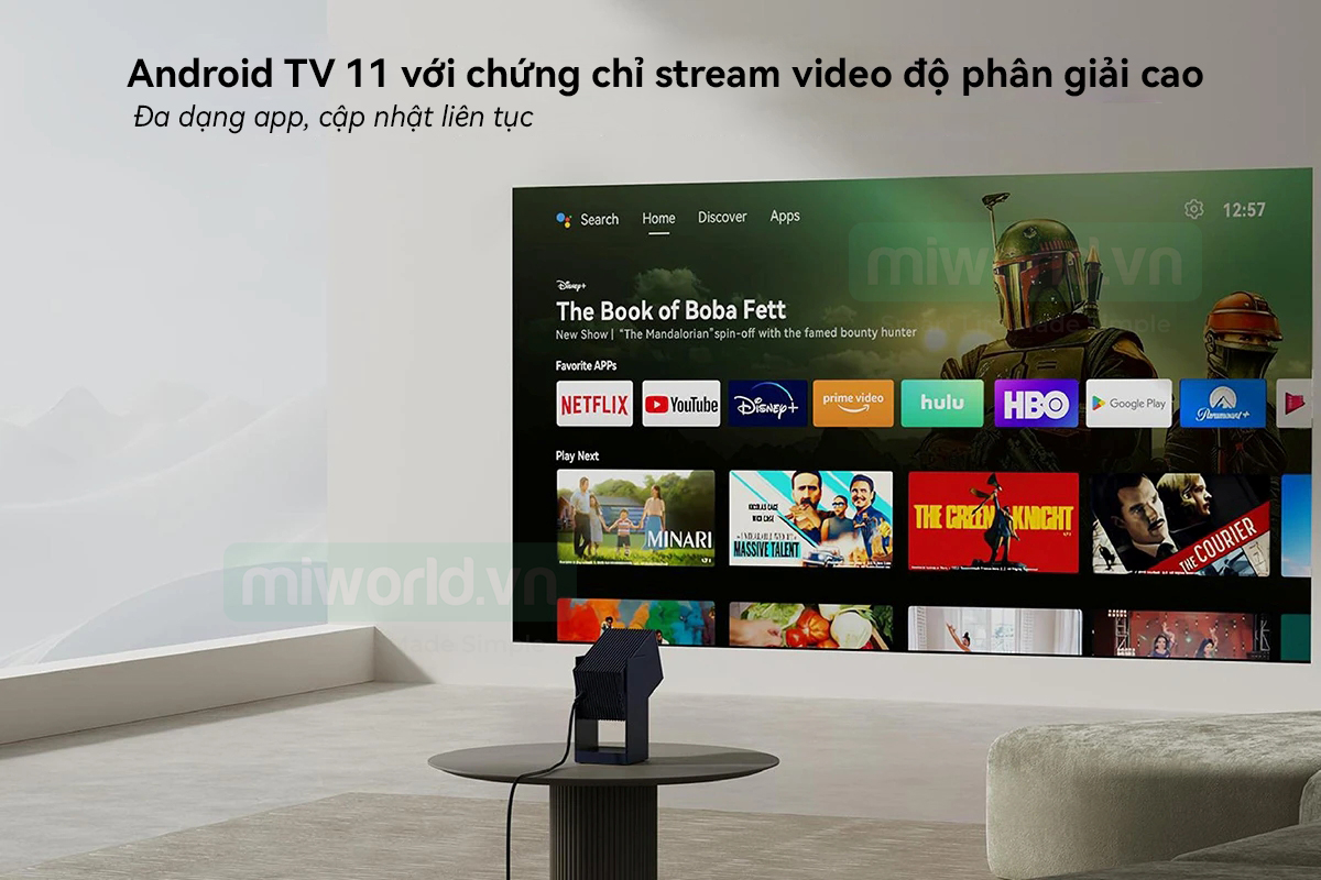 Máy chiếu chạy hệ điều hành Android TV 11, hỗ trợ cài đặt hơn 7000 ứng dụng: YouTube, Netflix, Disney+, FPT Play, VieON,… Ngoài ra, Cube 2 Pro tích hợp Chromecast, giúp truyền phát nội dung trực tiếp từ điện thoại, máy tính bảng hoặc laptop chỉ với một chạm.