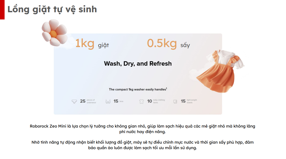 Roborock Zeo Mini không đơn thuần là một chiếc máy giặt sấy nhỏ gọn – nó là trợ thủ chăm sóc quần áo thông minh và toàn diện, đặc biệt phù hợp với lối sống hiện đại, tiện nghi và đề cao sức khỏe. Với những công nghệ tiên tiến như Zeo-cycle Drying, UVC, Smart Spray, LintClear™, đây là lựa chọn tối ưu cho bất cứ ai yêu thích sự sạch sẽ, tiết kiệm và tiện lợi trong từng chu trình giặt giũ.