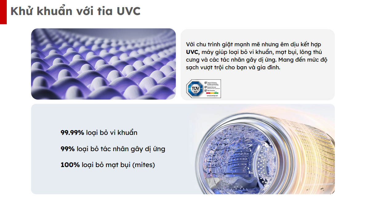 Khử khuẩn UVC & giặt nước nóng 90°C