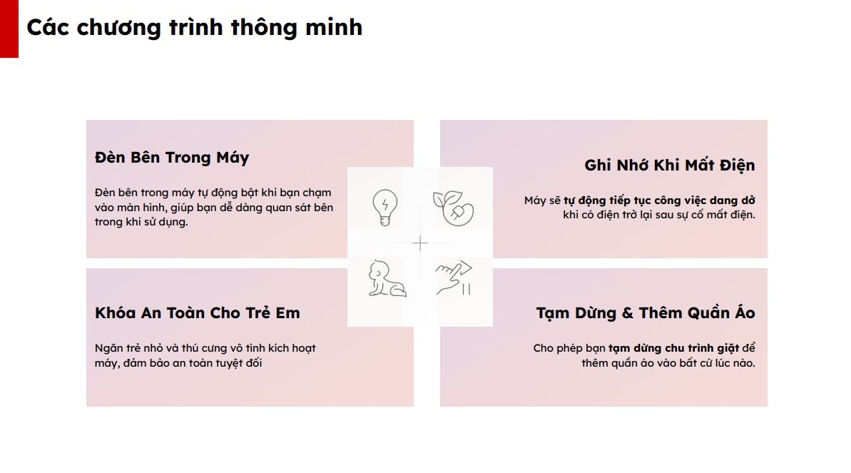 • Chu trình giặt mạnh mẽ nhưng êm dịu