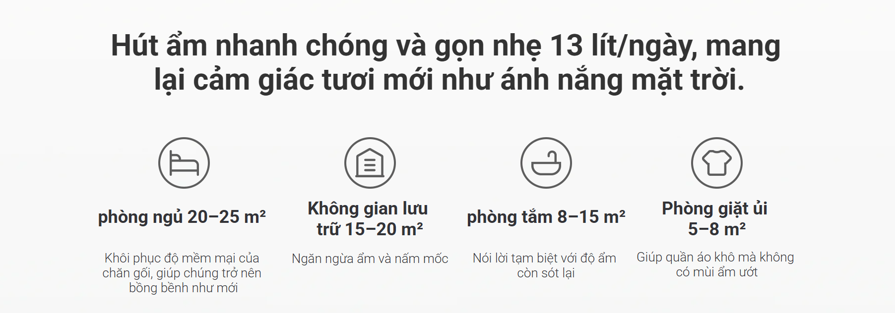 Hiệu suất hút ẩm vượt trội – 13 lít/ngày