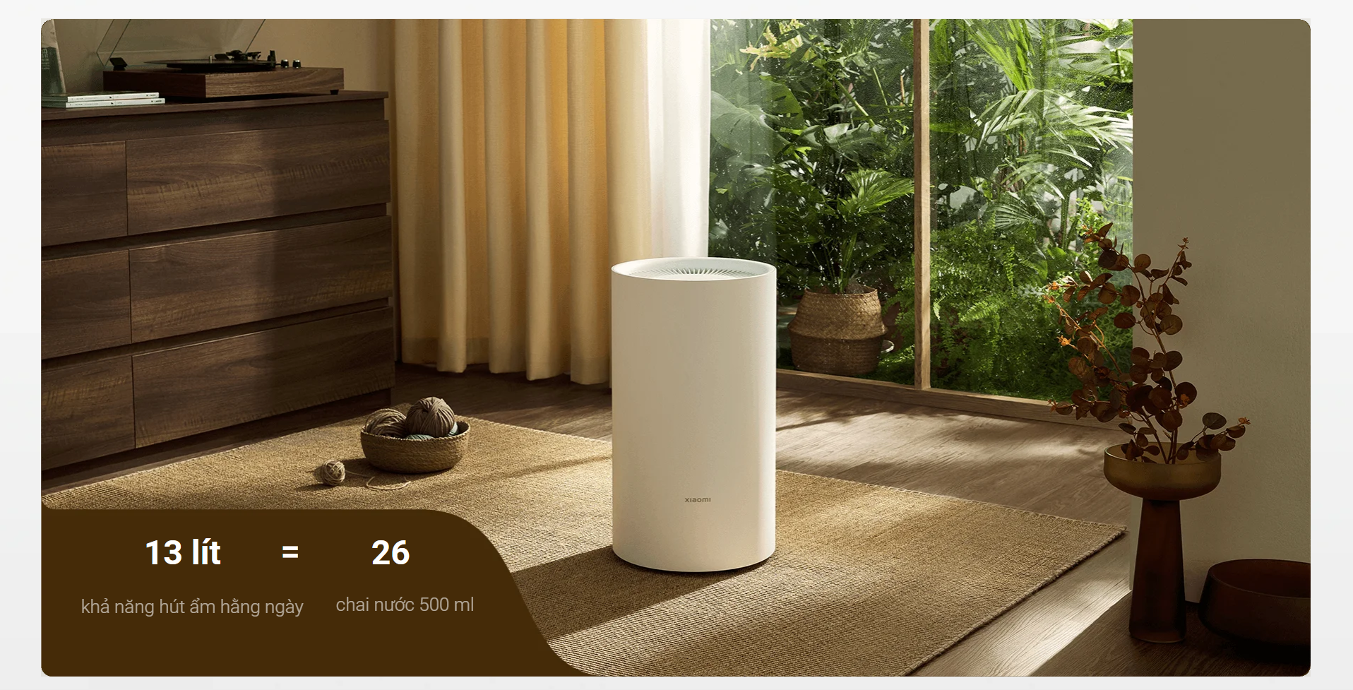 Xiaomi Smart Dehumidifier Lite có công suất hút ẩm lên tới 13 lít/ngày, tương đương với 26 chai nước 500ml, giúp loại bỏ nhanh chóng hơi ẩm trong không khí, mang đến cảm giác khô thoáng và tươi mới như ánh nắng ban mai.