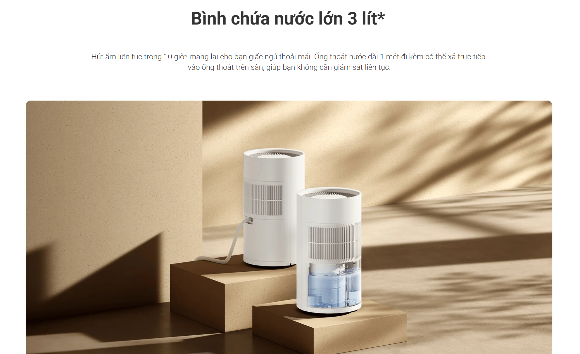 Bình chứa lớn 3 lít – Hút ẩm liên tục đến 10 giờ