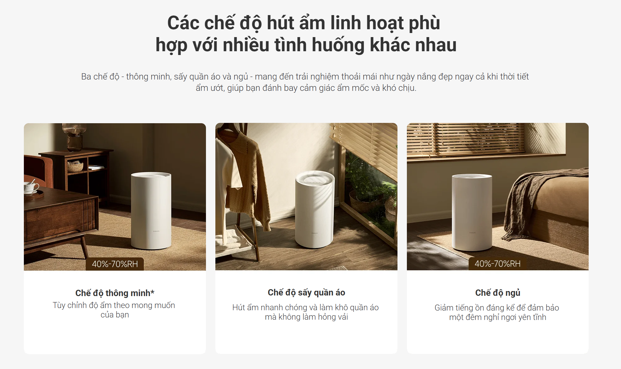Sản phẩm không chỉ giúp duy trì độ ẩm tối ưu, bảo vệ đồ nội thất, sấy khô quần áo nhanh chóng, mà còn mang lại bầu không khí trong lành và dễ chịu cho cả gia đình.