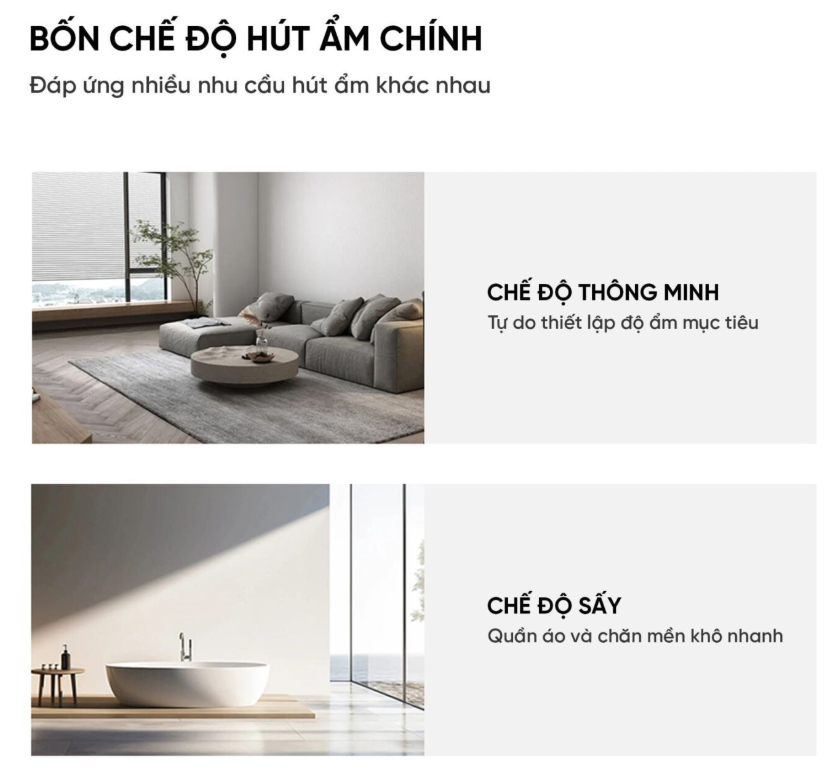 Kết hợp với công nghệ khử trùng plasma, máy không chỉ hút ẩm mà còn góp phần cải thiện chất lượng không khí trong nhà, đặc biệt phù hợp với gia đình có trẻ nhỏ và người lớn tuổi.