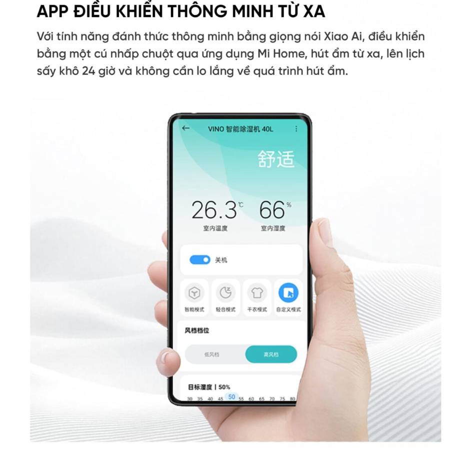 Một trong những điểm cộng lớn của Máy Hút Ẩm Thông Minh Xiaomi VINO 40L là khả năng điều khiển linh hoạt: