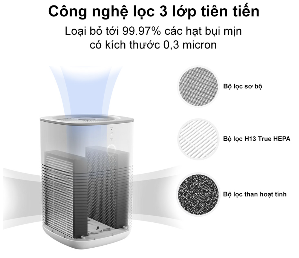 Công nghệ lọc 3 lớp H13 True HEPA tối ưu cho không gian sống