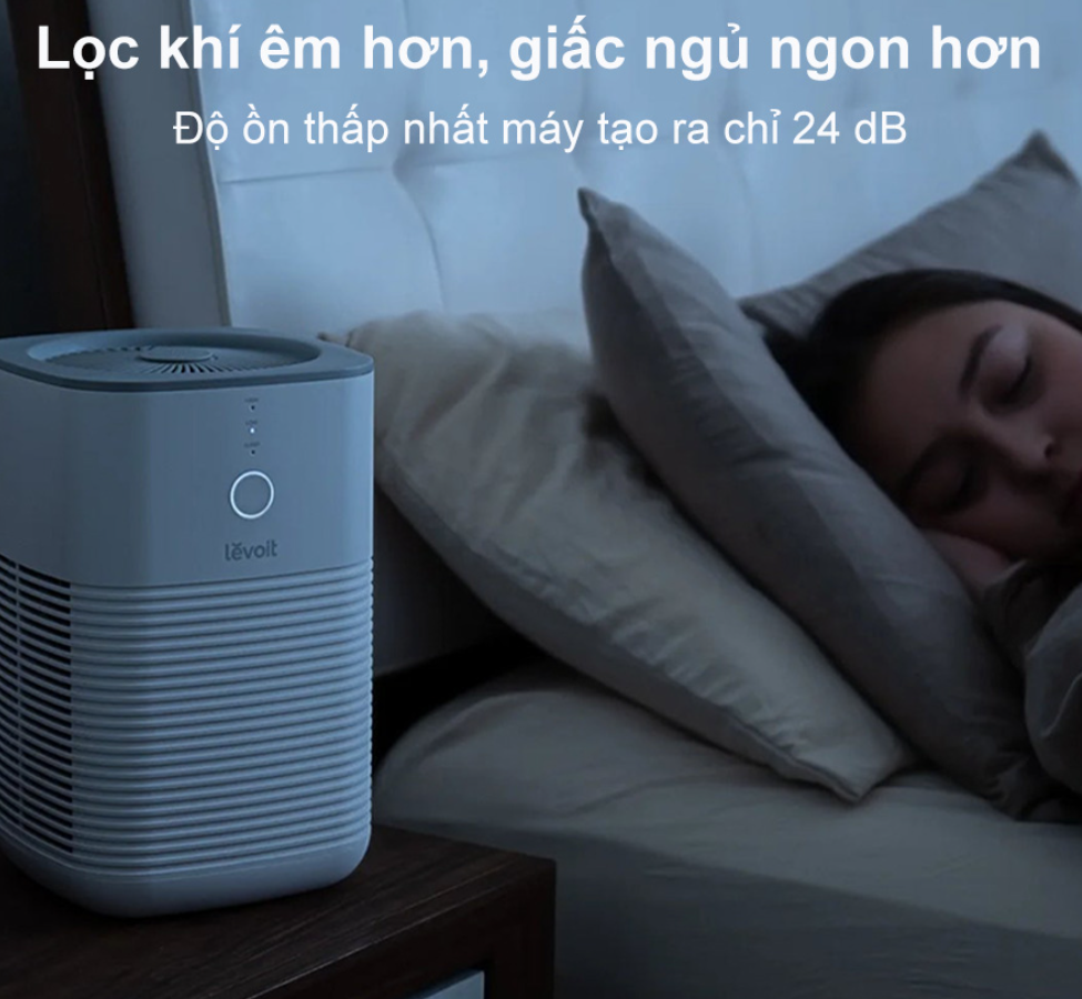 Chế độ ngủ của máy lọc không khí Levoit LV-H128 được tối ưu hóa cho những ai yêu thích sự yên tĩnh tuyệt đối. Khi kích hoạt, máy tự động tắt đèn báo và giảm độ ồn xuống mức chỉ khoảng 28dB – gần như không phát ra tiếng động, lý tưởng để sử dụng vào ban đêm. Nhờ đó, bạn có thể ngủ ngon suốt đêm mà không bị gián đoạn bởi tiếng ồn cơ học.