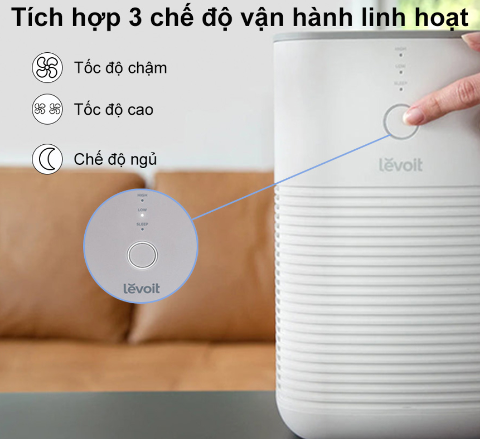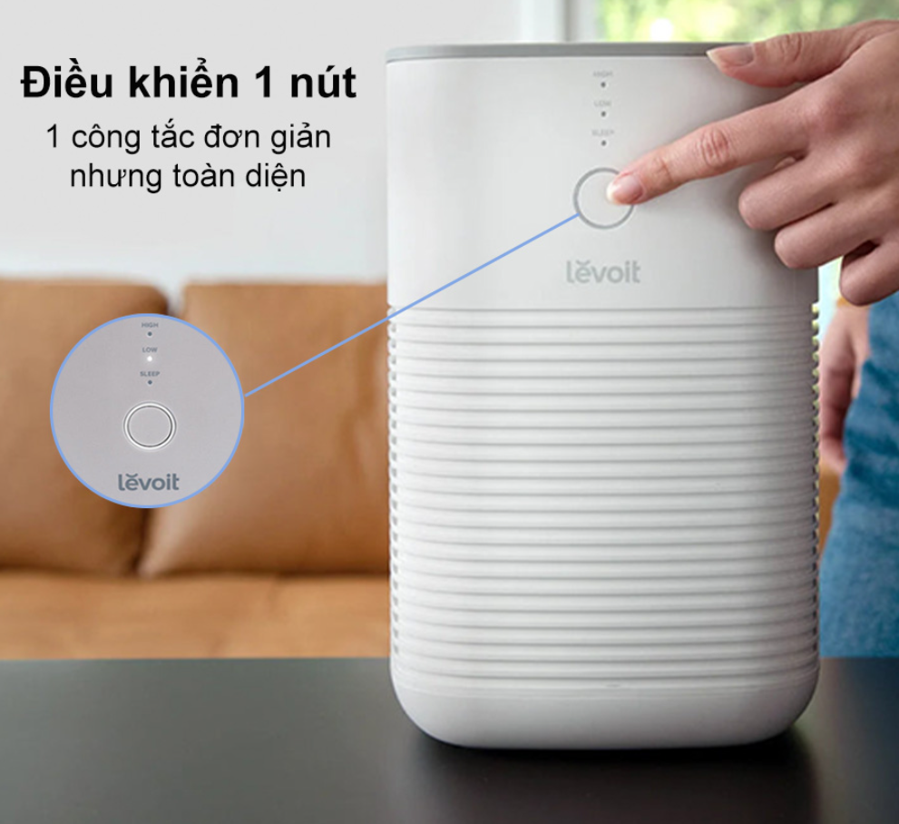 Sự tối giản trong thiết kế điều khiển là điểm cộng lớn của Levoit LV-H128. Tất cả chức năng đều được tích hợp trong một nút nhấn duy nhất, giúp bạn dễ dàng chuyển đổi giữa ba chế độ: tốc độ cao, tốc độ thấp và chế độ ngủ. Không cần phải thao tác phức tạp, chỉ với một lần nhấn, bạn đã có thể kiểm soát hoàn toàn chất lượng không khí trong phòng.