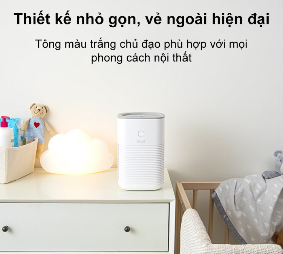 Máy lọc không khí Levoit LV-H128 sở hữu thiết kế tối giản nhưng không kém phần tinh tế, với tông màu trắng chủ đạo và các chi tiết nút bấm LED được hoàn thiện sắc sảo. Kích thước nhỏ gọn cho phép bạn dễ dàng đặt máy trên bàn làm việc, kệ sách hoặc bất kỳ vị trí nào mà không chiếm nhiều diện tích. Đây là sản phẩm vừa đẹp về hình thức, vừa mạnh mẽ về chức năng, xứng đáng có mặt trong mọi không gian sống hiện đại.