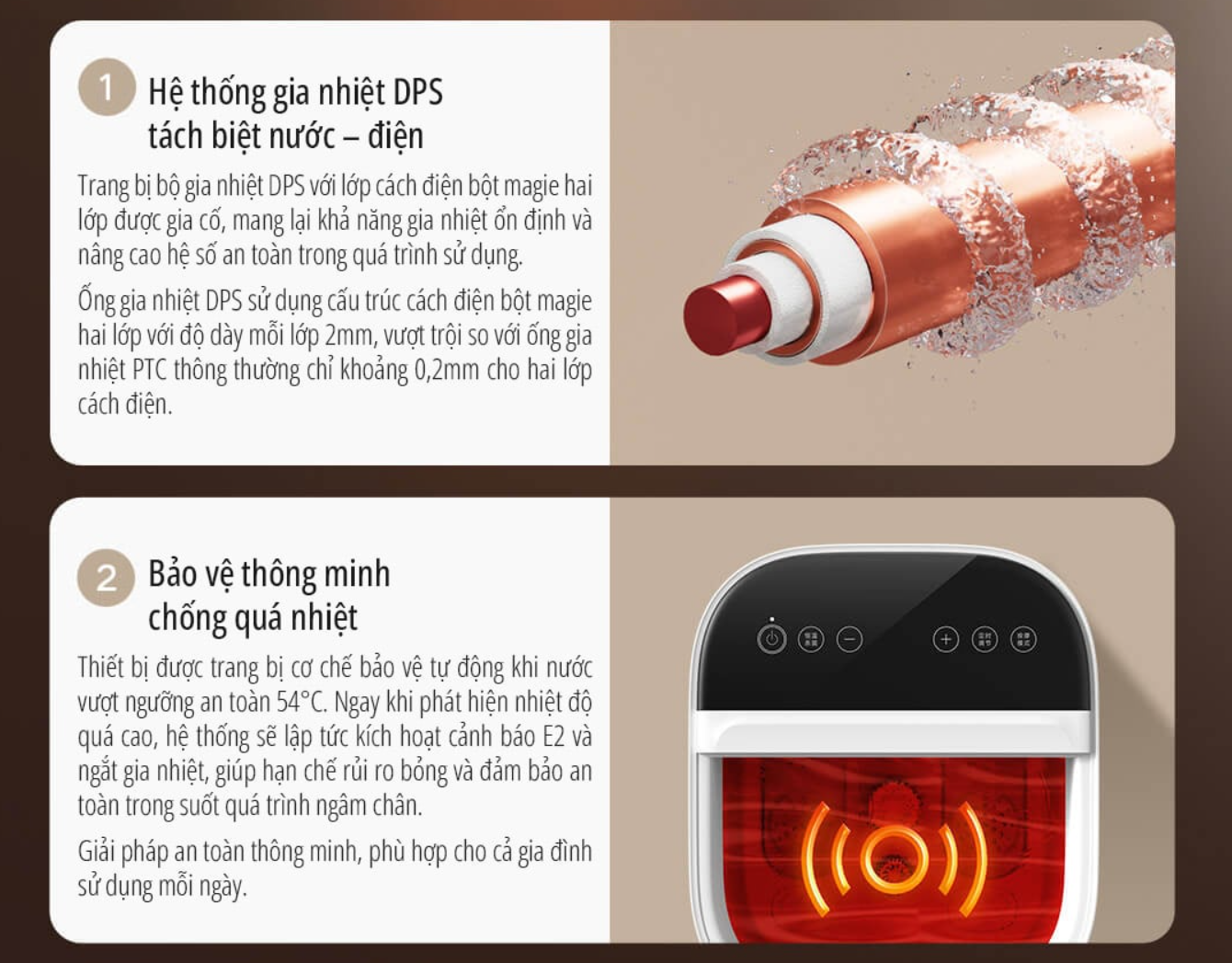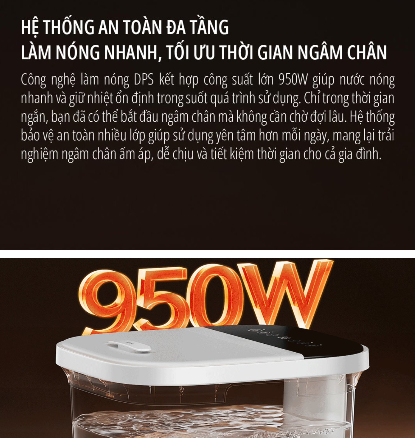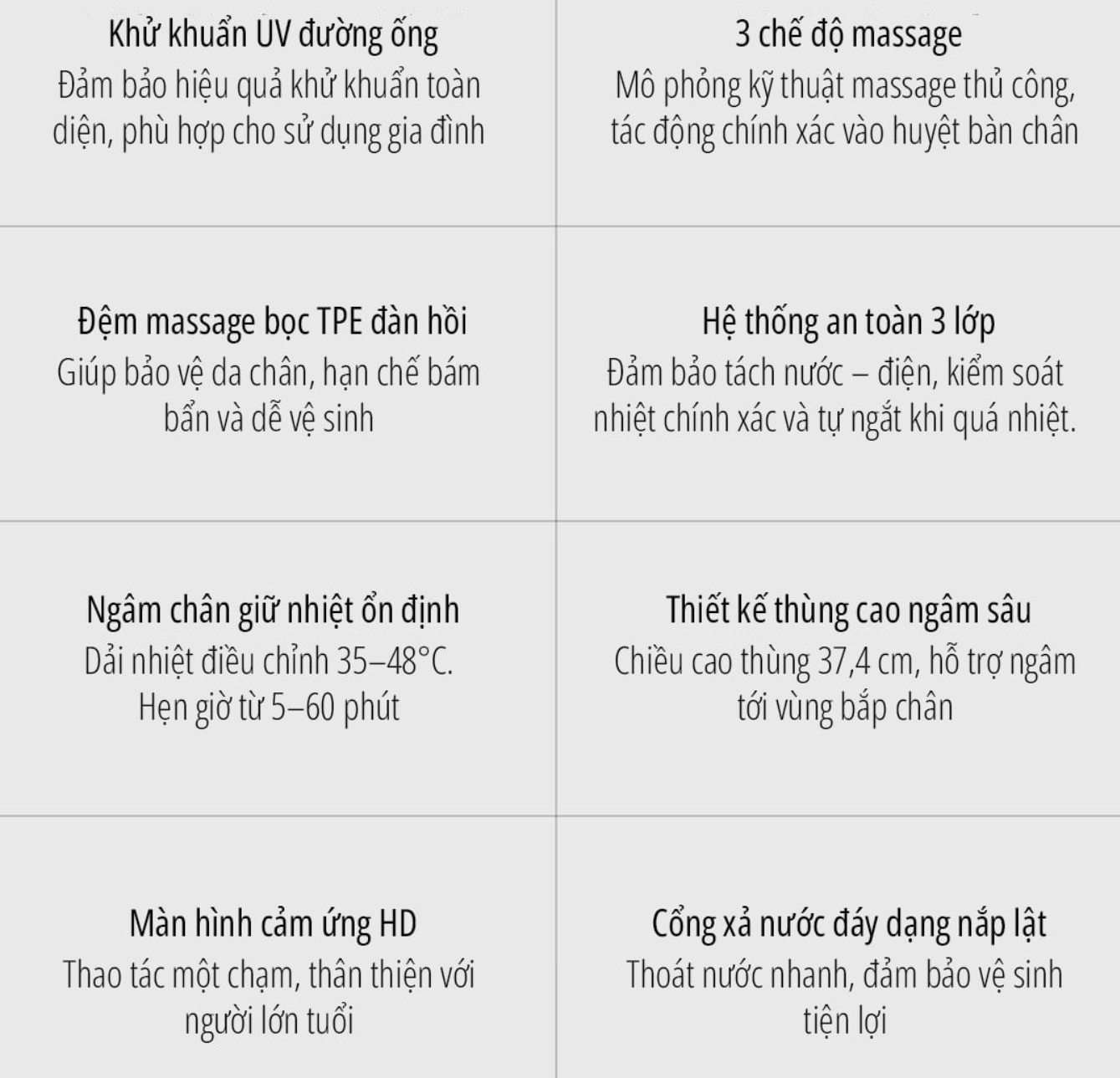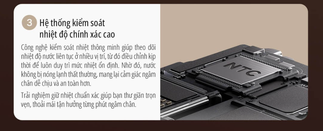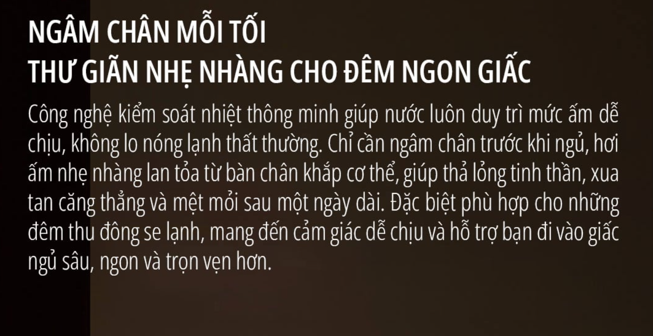 Thiết bị có khả năng làm nóng và duy trì nhiệt độ nước ổn định trong khoảng từ 35 đến 48 độ C. Mức nhiệt này phù hợp để làm ấm bàn chân, hỗ trợ thư giãn cơ và hạn chế cảm giác lạnh chân, đặc biệt hiệu quả vào mùa đông.