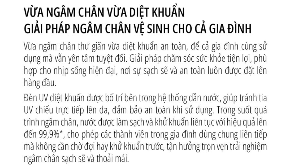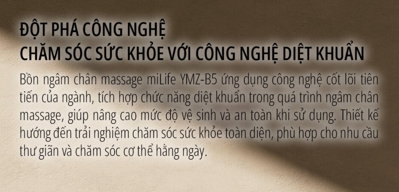 Bồn ngâm chân massage miLife YMZ-B5 được tích hợp chức năng khử khuẩn nước, giúp hạn chế vi khuẩn và đảm bảo môi trường ngâm chân sạch sẽ, an toàn cho da, đặc biệt phù hợp với người có làn da nhạy cảm.