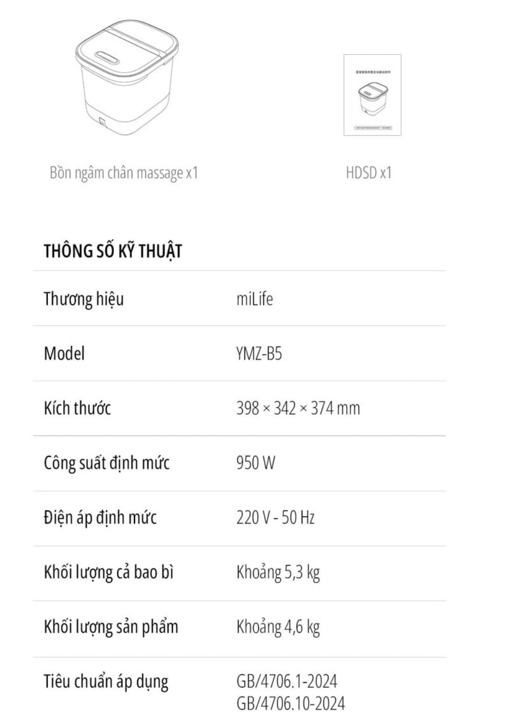 - Tên sản phẩm: Bồn ngâm chân massage miLife YMZ-B5