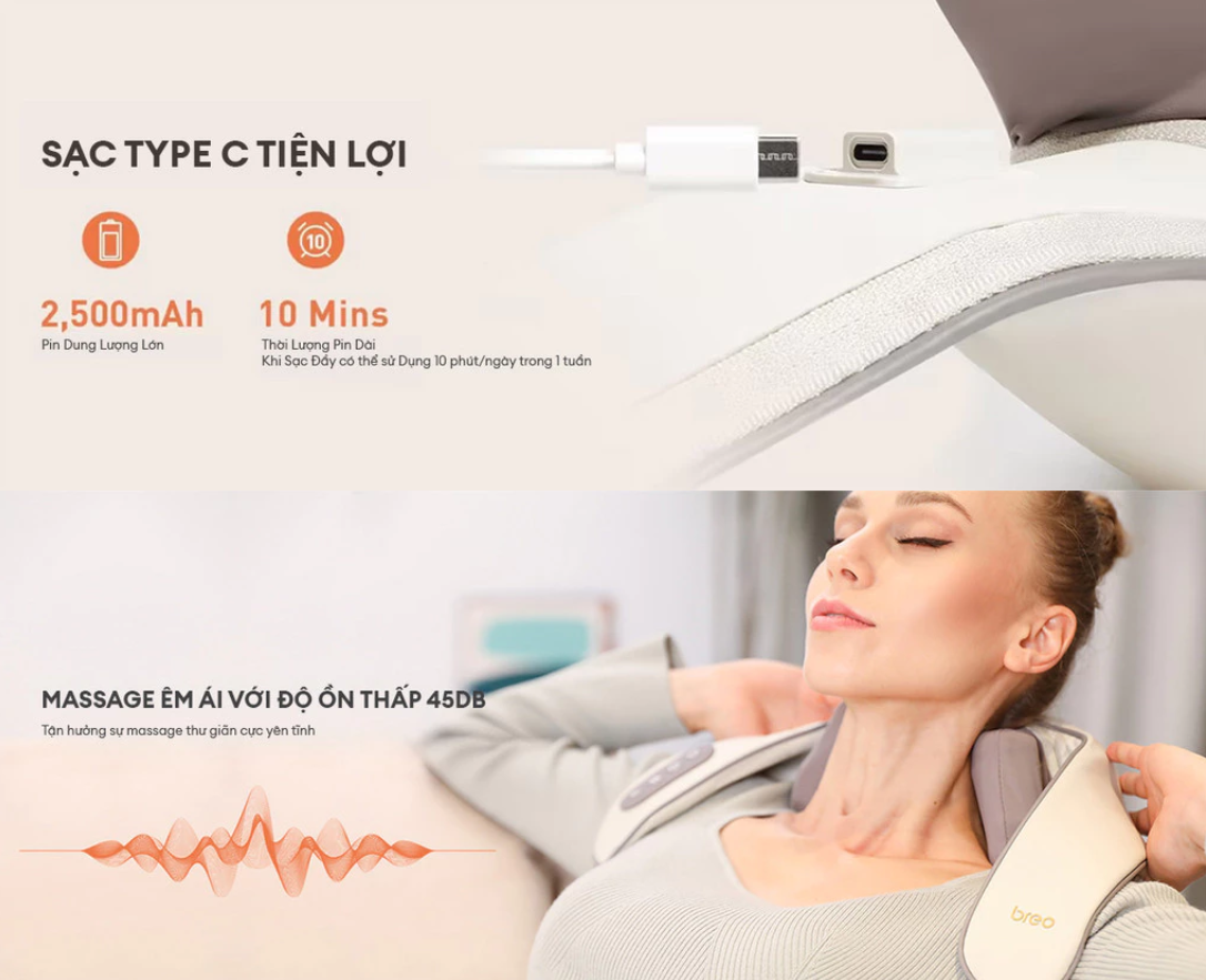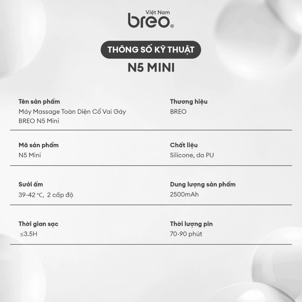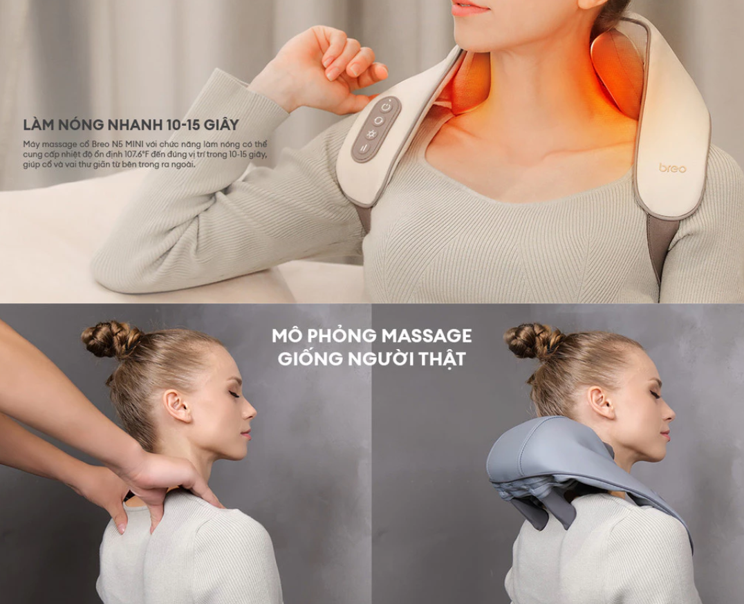 Máy massage cổ Breo N5 mini mang đến trải nghiệm massage chân thực như đôi tay chuyên viên nhờ 6 đầu xoay 3D kết hợp công nghệ nhiệt NTC. Thiết bị giúp xoa dịu căng cứng, giảm mỏi vai gáy và tái tạo năng lượng nhanh chóng, cho bạn tận hưởng cảm giác thư giãn mọi lúc, mọi nơi.