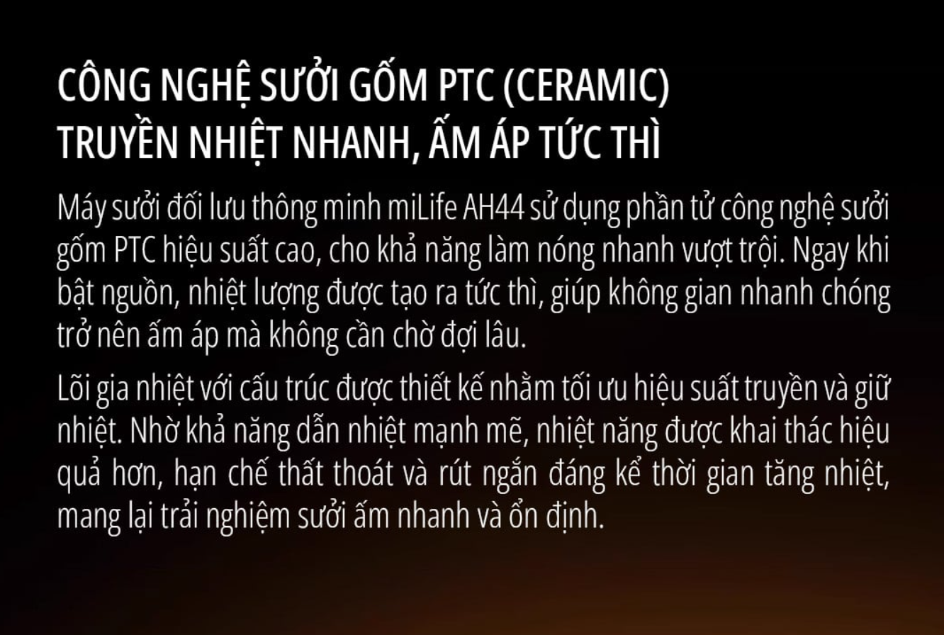 Máy Sưởi Đối Lưu miLife 2200W AH44 – Sưởi Ấm Nhanh, An Toàn, Giữ Nhiệt Thông Minh