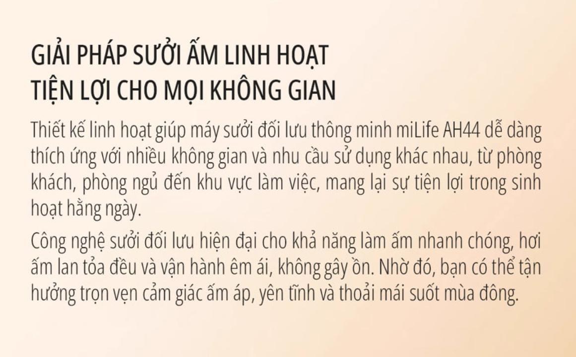 Khác với các loại máy sưởi dùng quạt thổi trực tiếp, máy sưởi đối lưu miLife AH44: