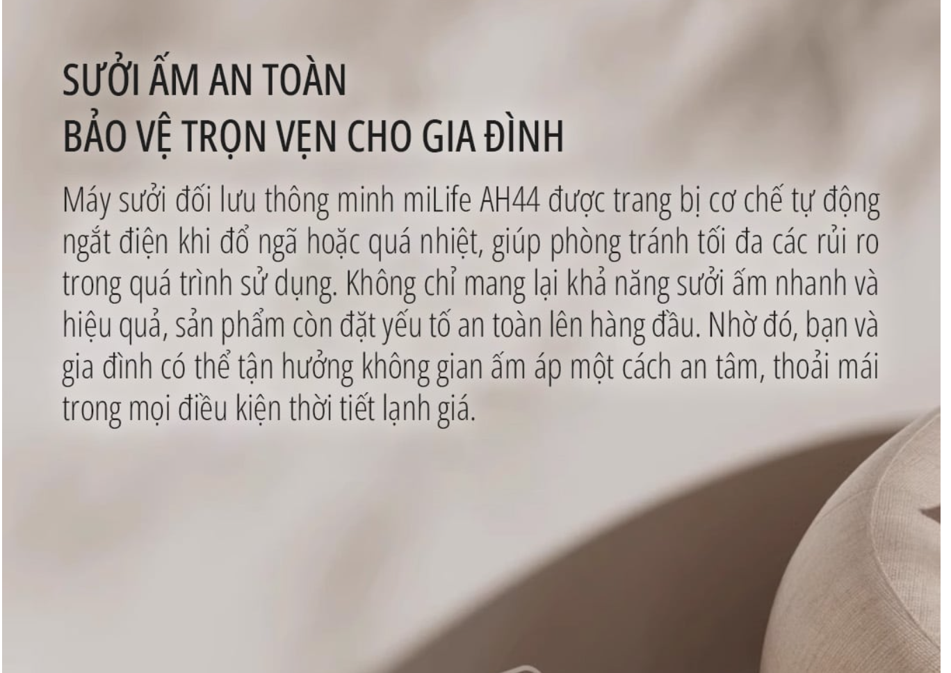 Máy sưởi miLife AH44 được trang bị đầy đủ các cơ chế bảo vệ: