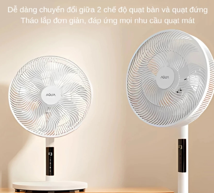 - Thiết kế 2 trong 1: Dễ dàng tháo lắp để chuyển đổi giữa dáng quạt đứng và quạt bàn, phù hợp cho nhiều không gian khác nhau.