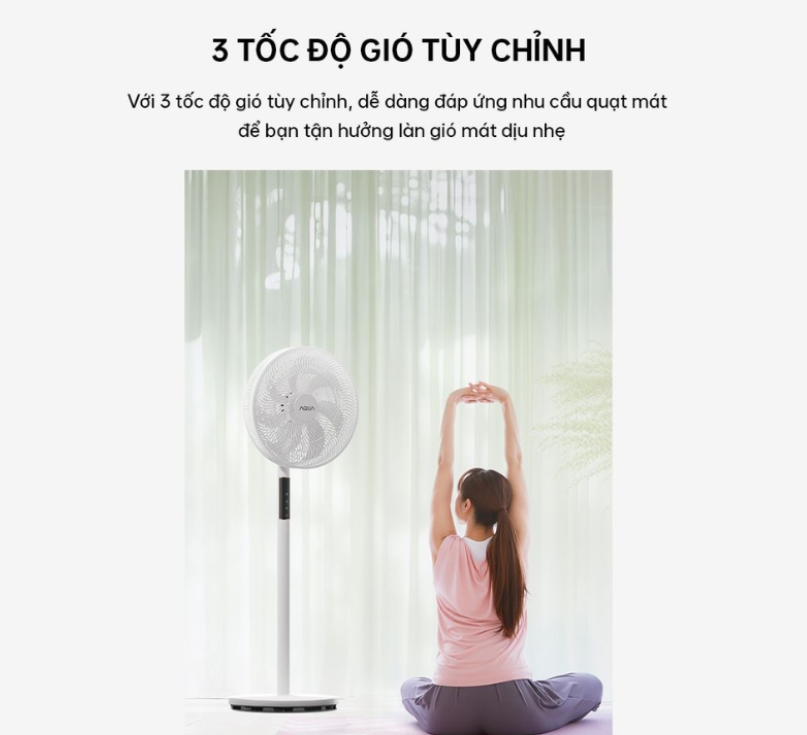 Sự thay đổi của thời tiết và nhiệt độ cơ thể ở từng thời điểm là khác nhau. Hiểu được điều này, Quạt Aqua FED3502R cung cấp 3 mức tốc độ gió tùy chỉnh: nhẹ, vừa và mạnh.