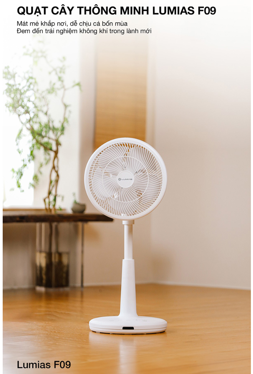 Quạt cây thông minh Lumias F09 là lựa chọn hoàn hảo mang đến không khí trong lành, mát mẻ dễ chịu quanh năm cho mọi không gian sống. Bạn có thể dễ dàng điều khiển quạt theo nhiều cách, phù hợp cho cả người già và trẻ nhỏ. Bên cạnh, khả năng tiết kiệm điện vượt trội, quạt F09 còn linh hoạt sử dụng cả trên bàn hay đặt sàn nhờ chiều cao có thể điều chỉnh. Đặc biệt, nhờ động cơ không chổi than, quạt vận hành siêu êm ái với độ ồn chỉ 26dB, không làm phiền giấc ngủ của bạn. Bạn cũng có thể điều khiển quạt từ xa tiện lợi với remote đi kèm. Hơn nữa, Lumias F09 còn sở hữu tốc độ gió mạnh 8m/s, giúp lưu thông không khí khắp phòng chỉ trong 3 phút.
