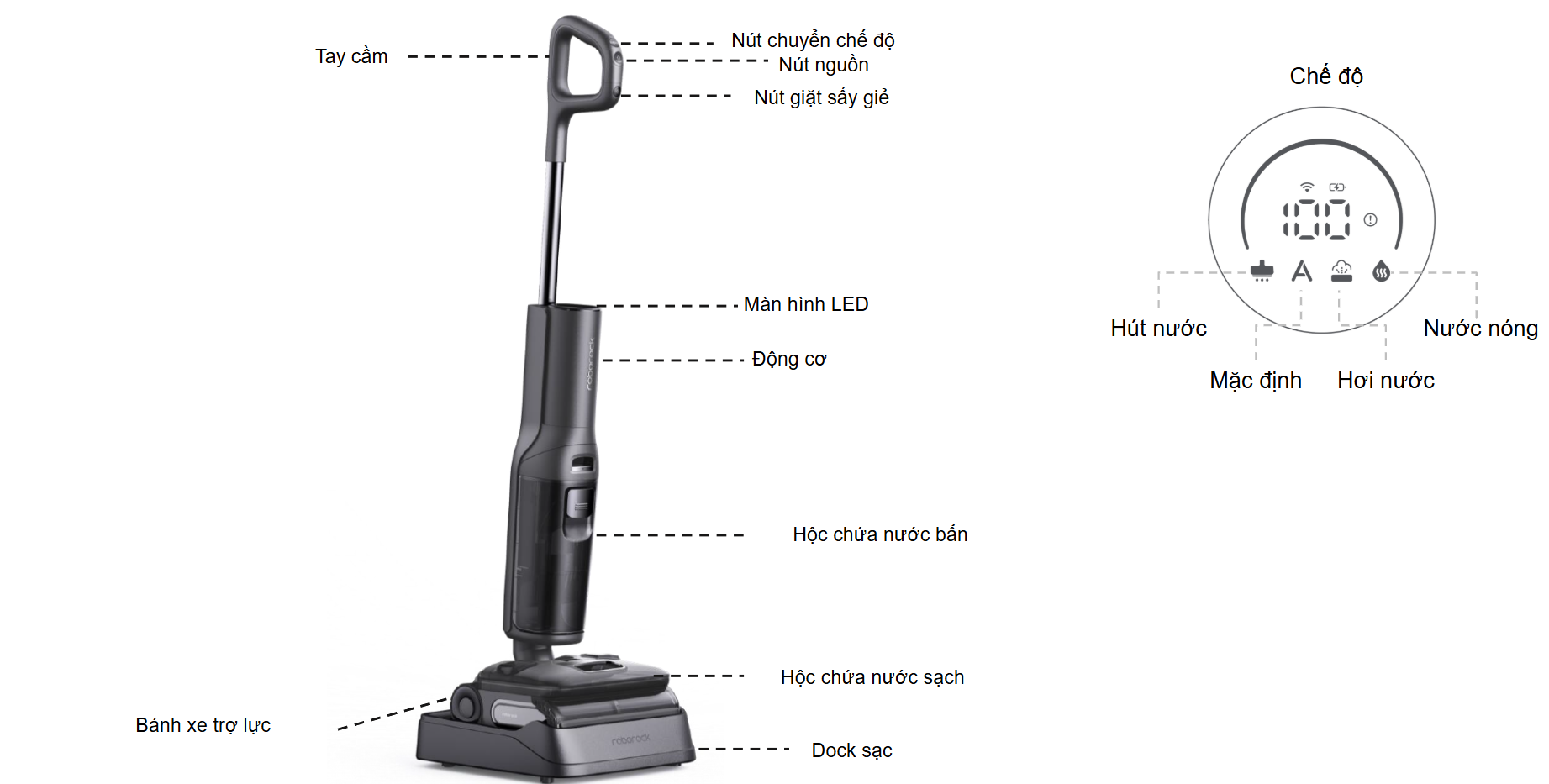 - ✅ Dock sạc tự giặt sấy 90°C, loại bỏ vi khuẩn, tiết kiệm thời gian