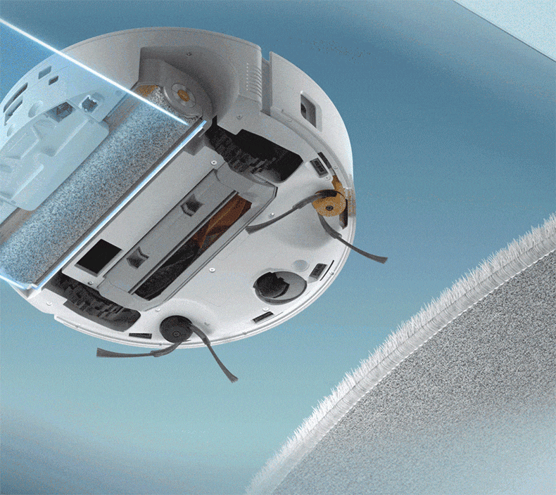 Roborock Qrevo Curv 2 Flow được trang bị cụm con lăn bản rộng 270mm và quy trình làm sạch 4 bước: phun – chà – gạt – hút. Nhờ đó, robot không để lại vệt bánh xe và làm sạch nhanh chóng, hiệu quả, trả lại sàn nhà sáng bóng, sạch khuẩn 99,99%.