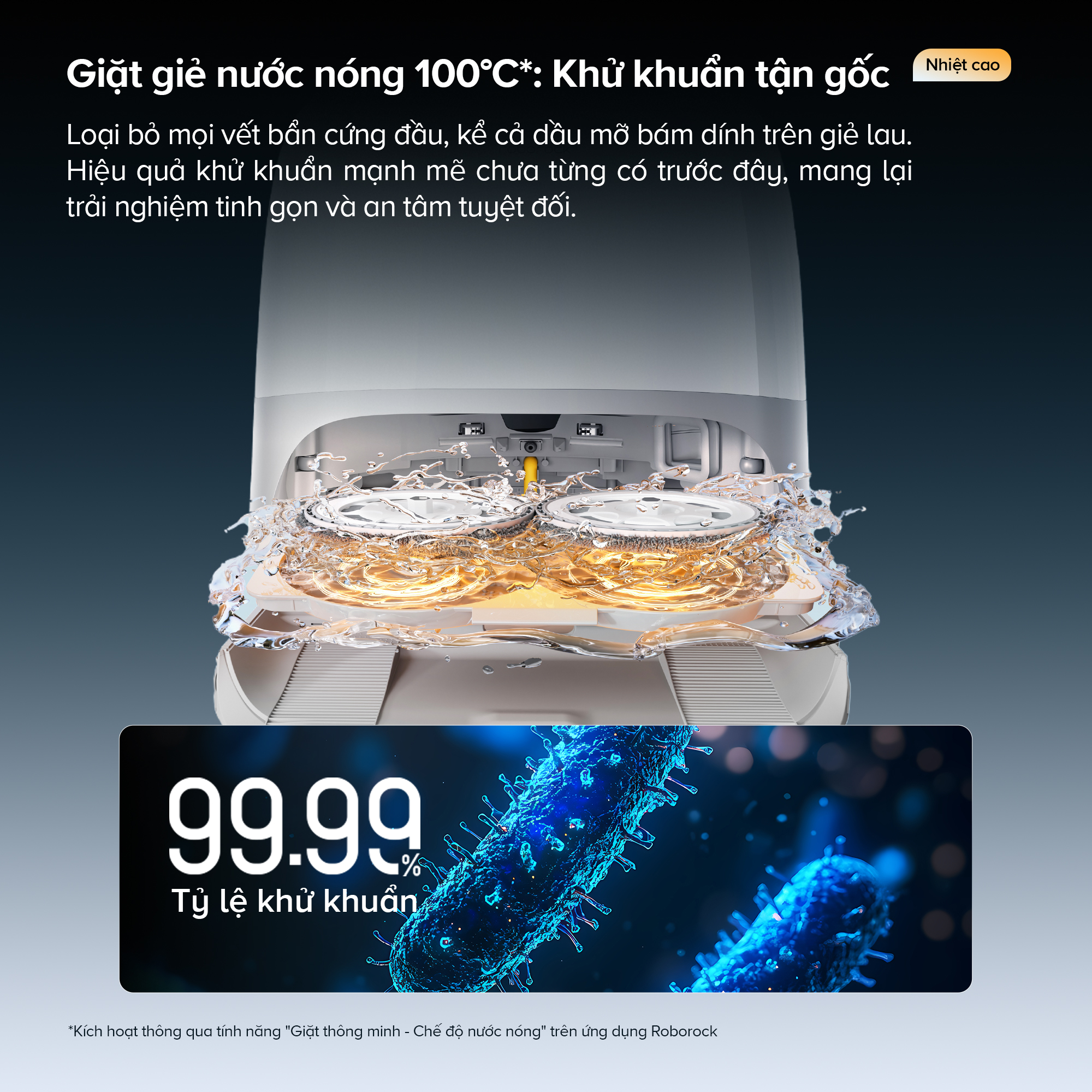- Vệ sinh toàn diện: Giặt và sấy giẻ tự động, chống khuẩn tối ưu.