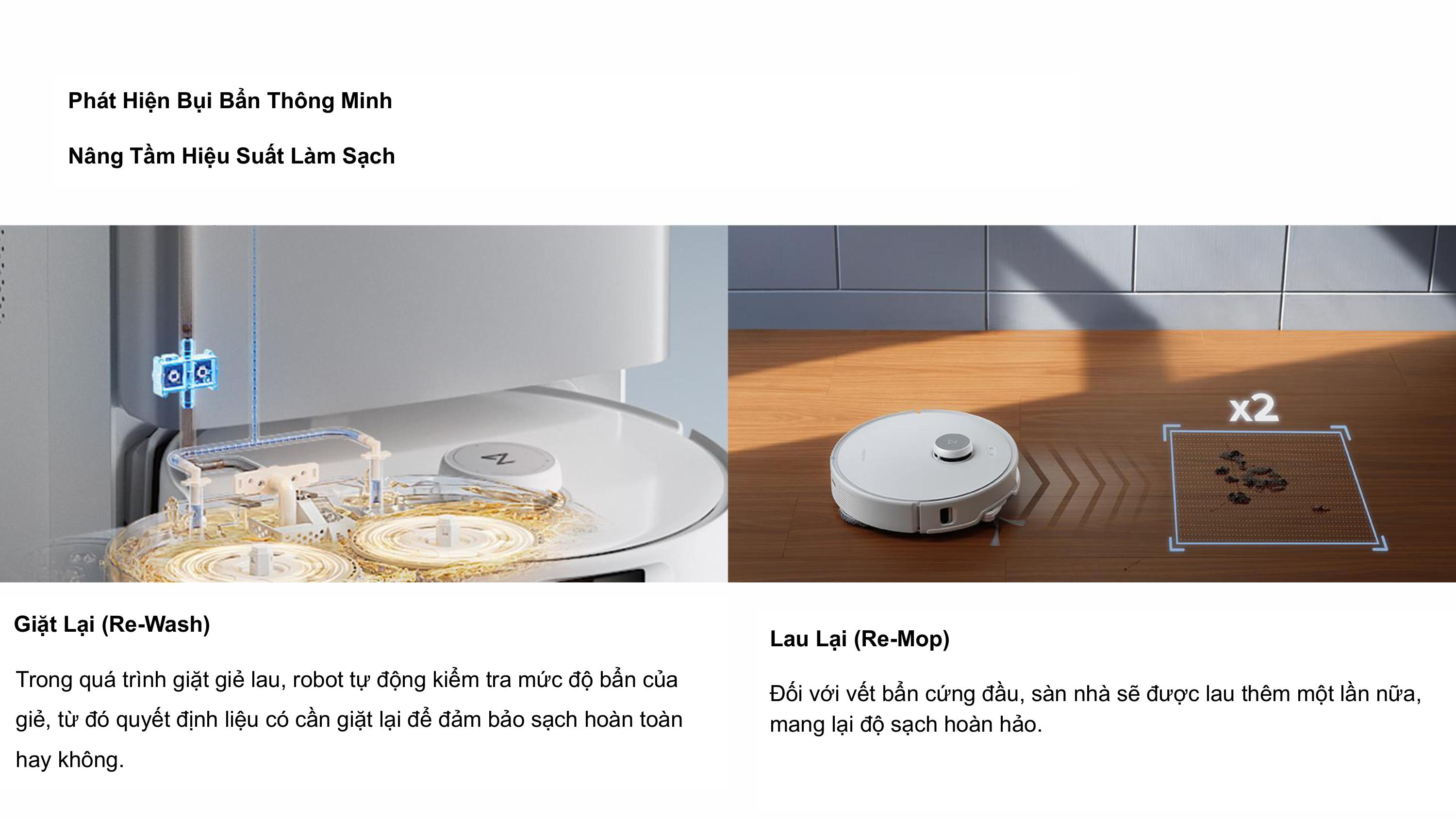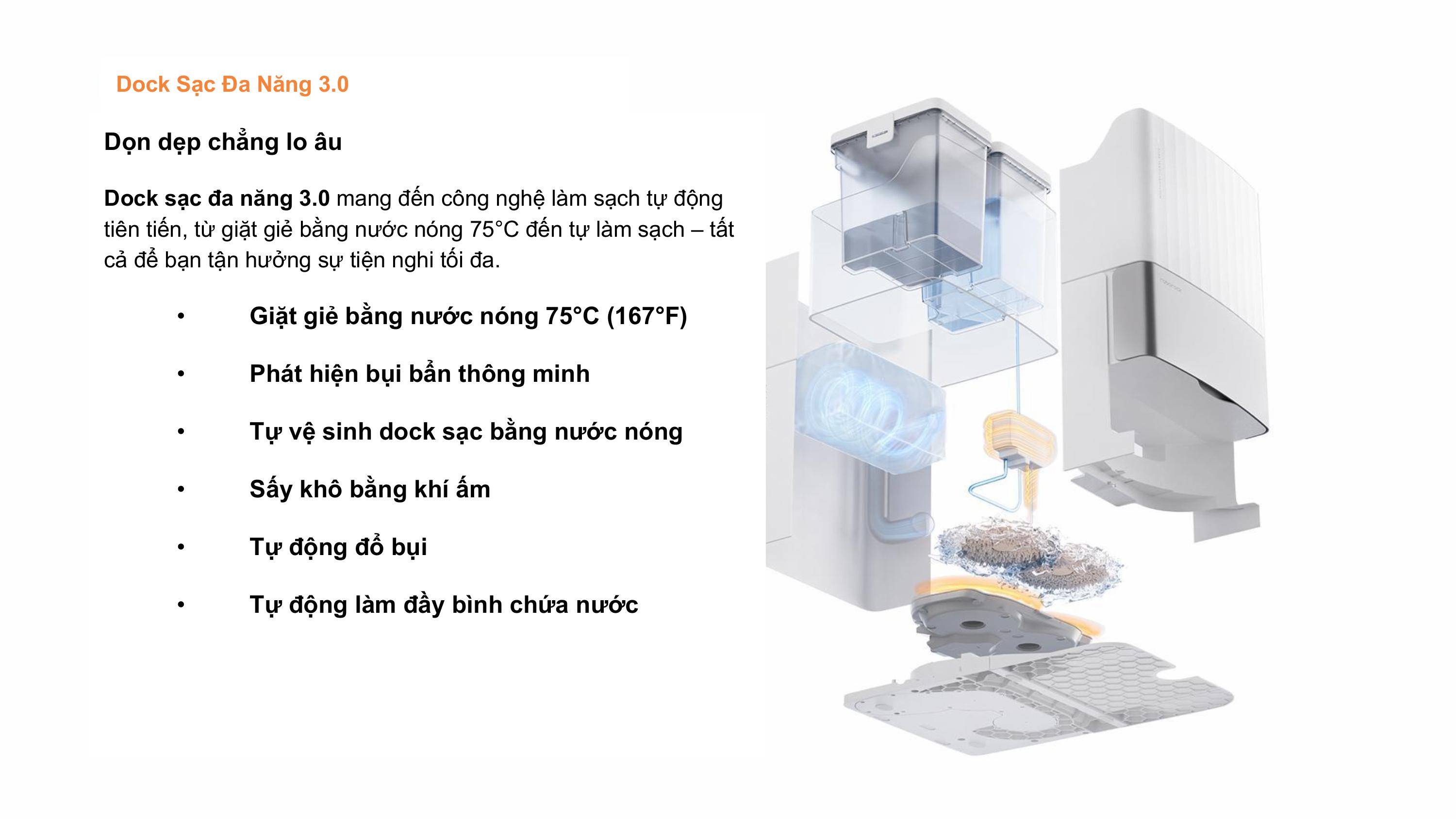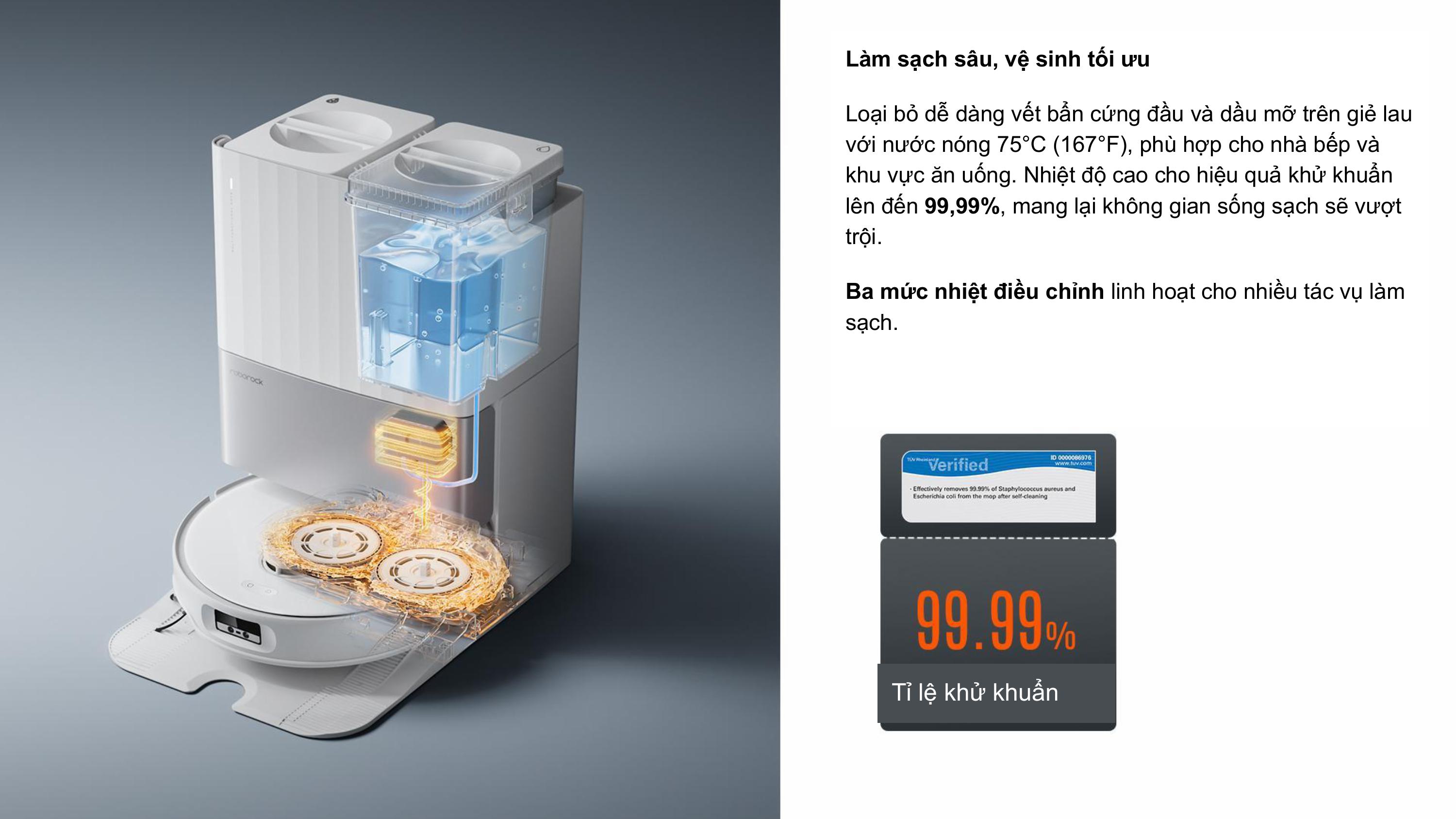 Trạm sạc được nâng cấp giặt giẻ lau bằng nước nóng 75℃, tẩy sach bụi bẫn, diệt khuẩn hiệu quả.