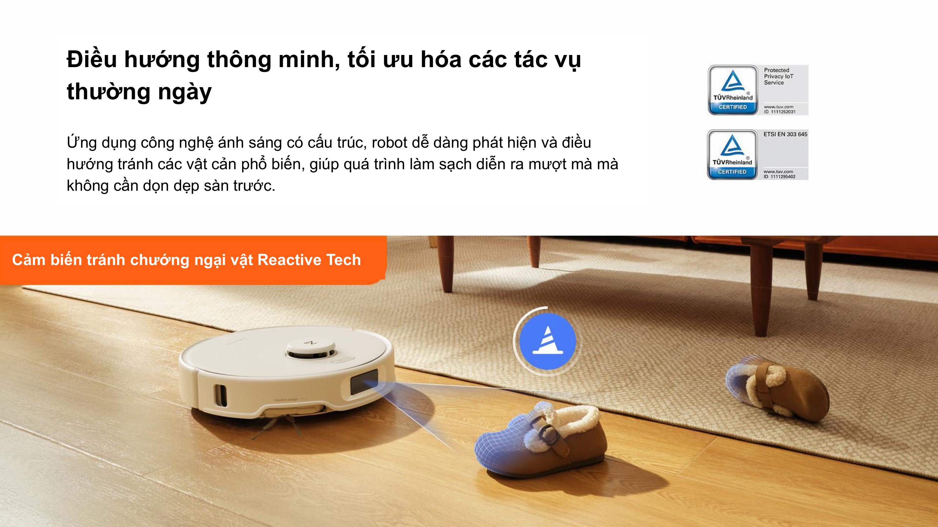 Với công nghệ Reactive AI, robot nhận diện 62 loại chướng ngại vật, tăng cường khả năng di chuyển an toàn và hiệu quả.