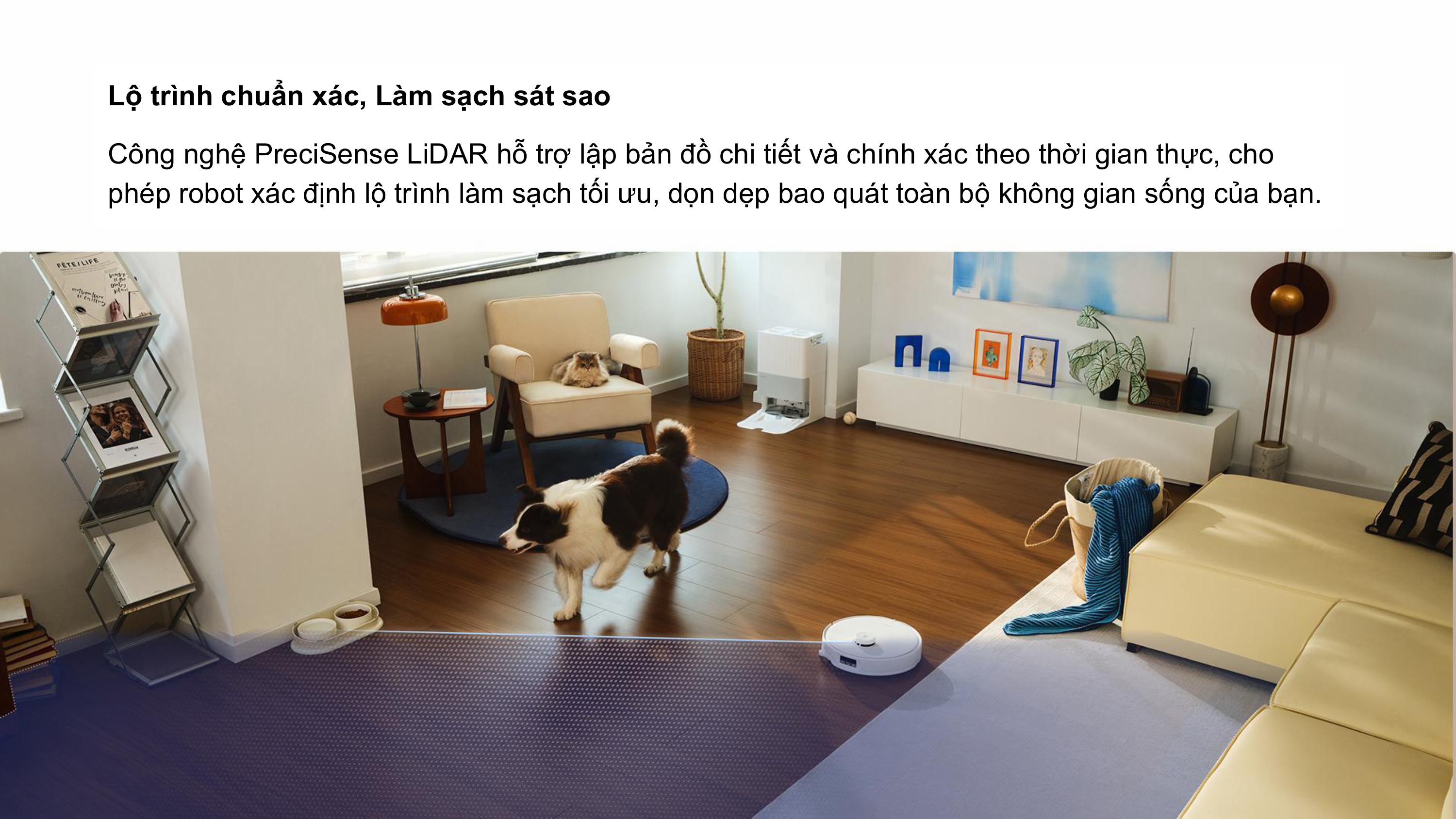Công nghệ PreciSense LiDAR hỗ trợ vẽ bản đồ 3D và tính toán tuyến đường làm sạch tối ưu.