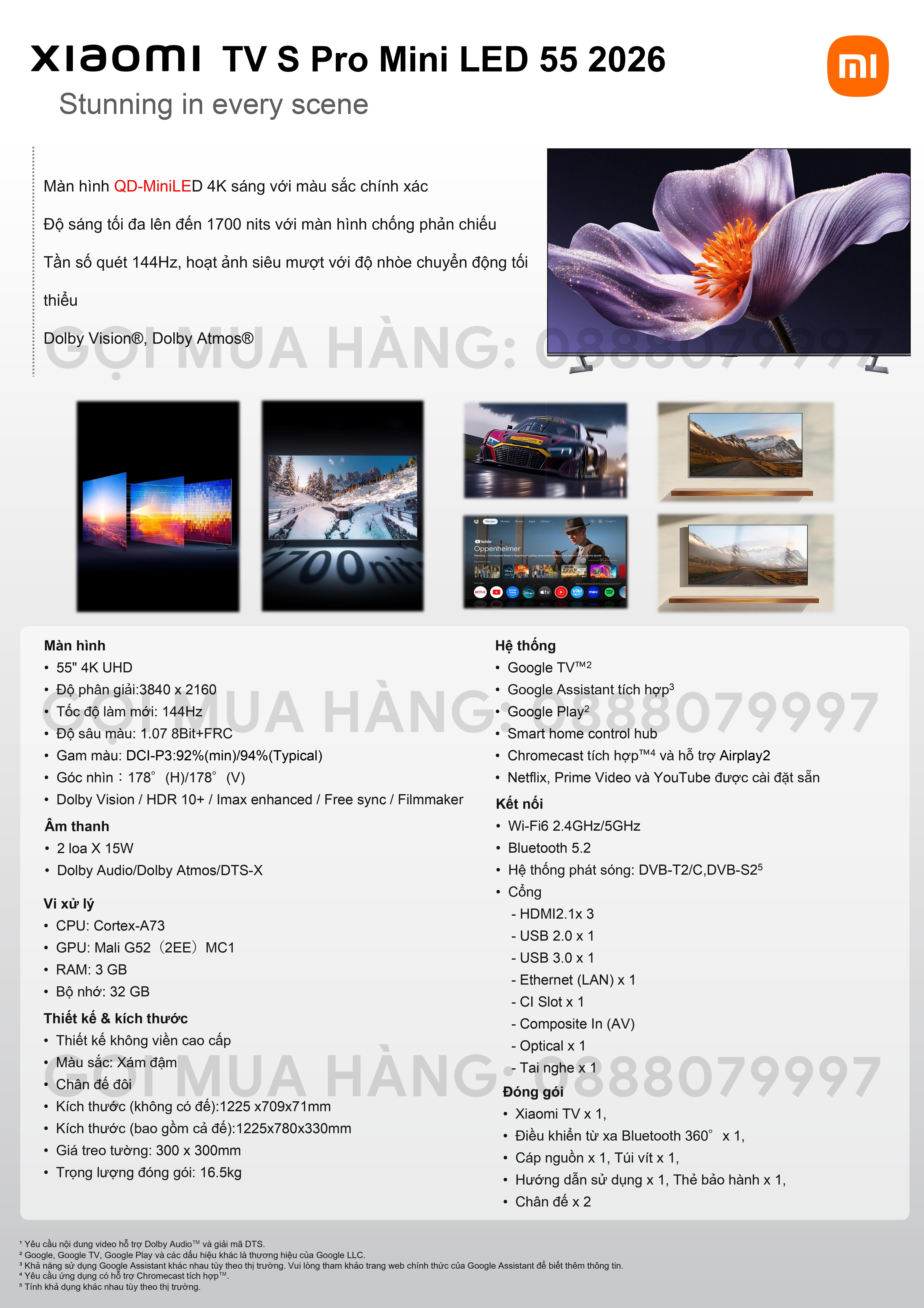 Bên trong chiếc tivi Xiaomi S Pro Mini LED 55 inch 2026 là cấu hình mạnh mẽ: