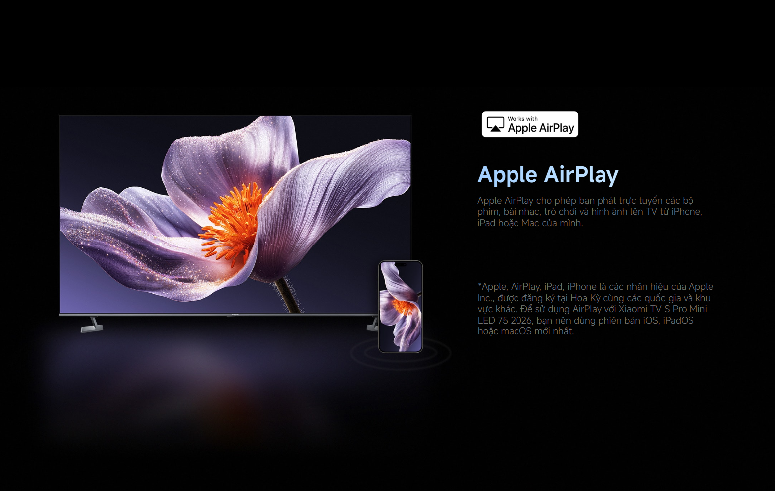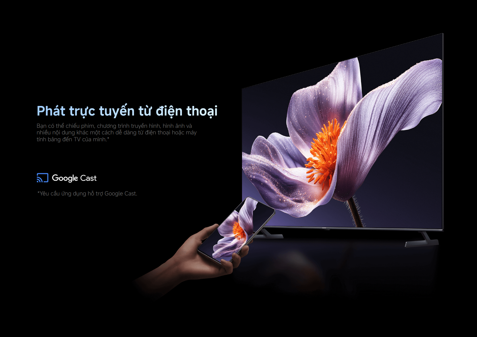 - Chromecast và AirPlay 2 giúp dễ dàng chia sẻ nội dung từ điện thoại, máy tính bảng lên màn hình lớn.