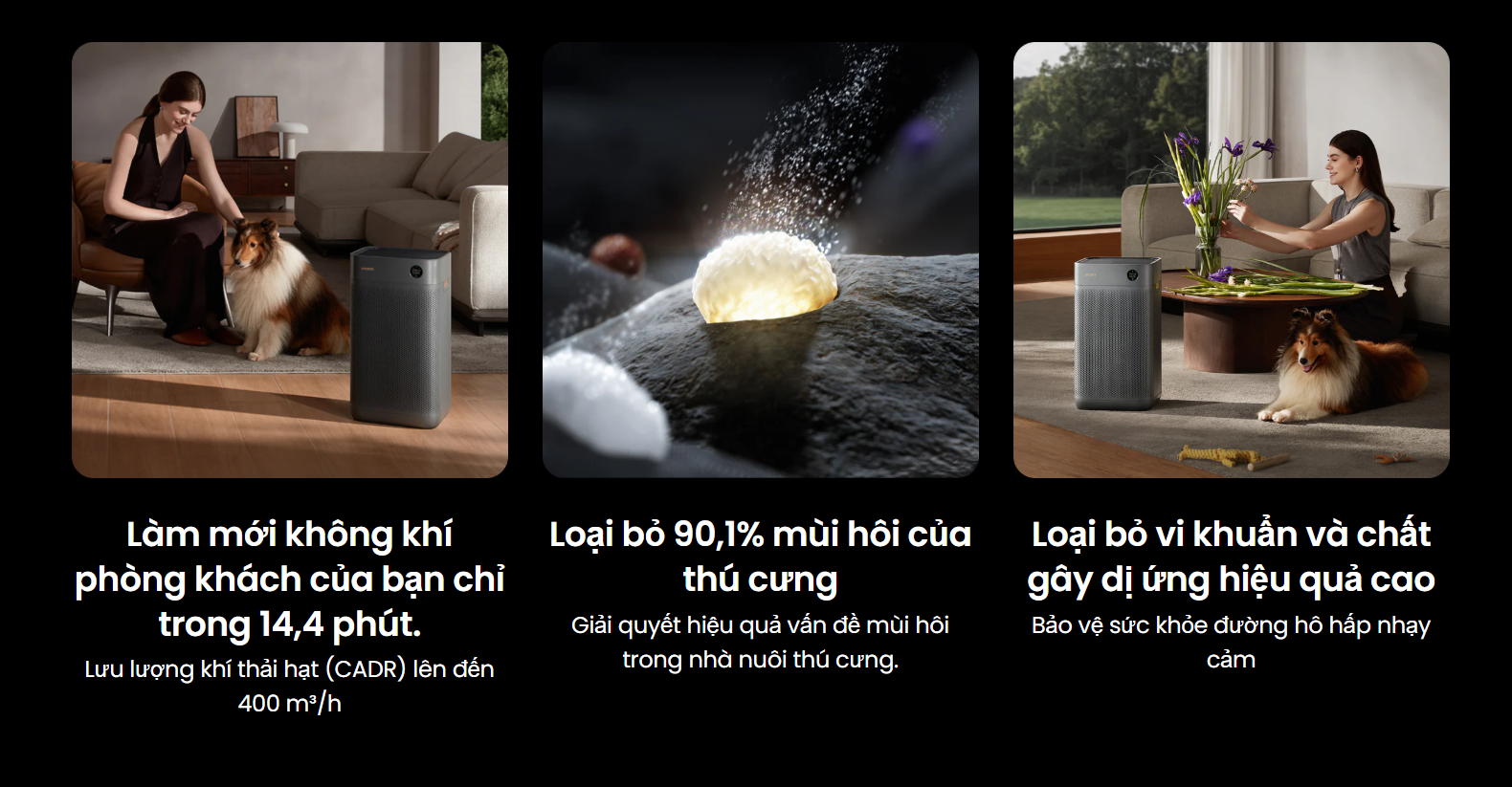 | Điểm mạnh nổi bật | Khử mùi pet, vận hành êm, thiết kế sang | Giá dễ tiếp cận | Cân bằng hiệu năng | Công suất mạnh | Hiệu năng cao nhất |