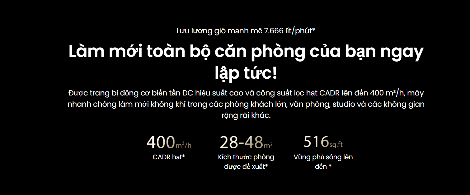 Không khí trong lành được phân bổ đều khắp không gian, giúp bạn hít thở dễ dàng hơn, thư giãn trọn vẹn hơn mỗi ngày.