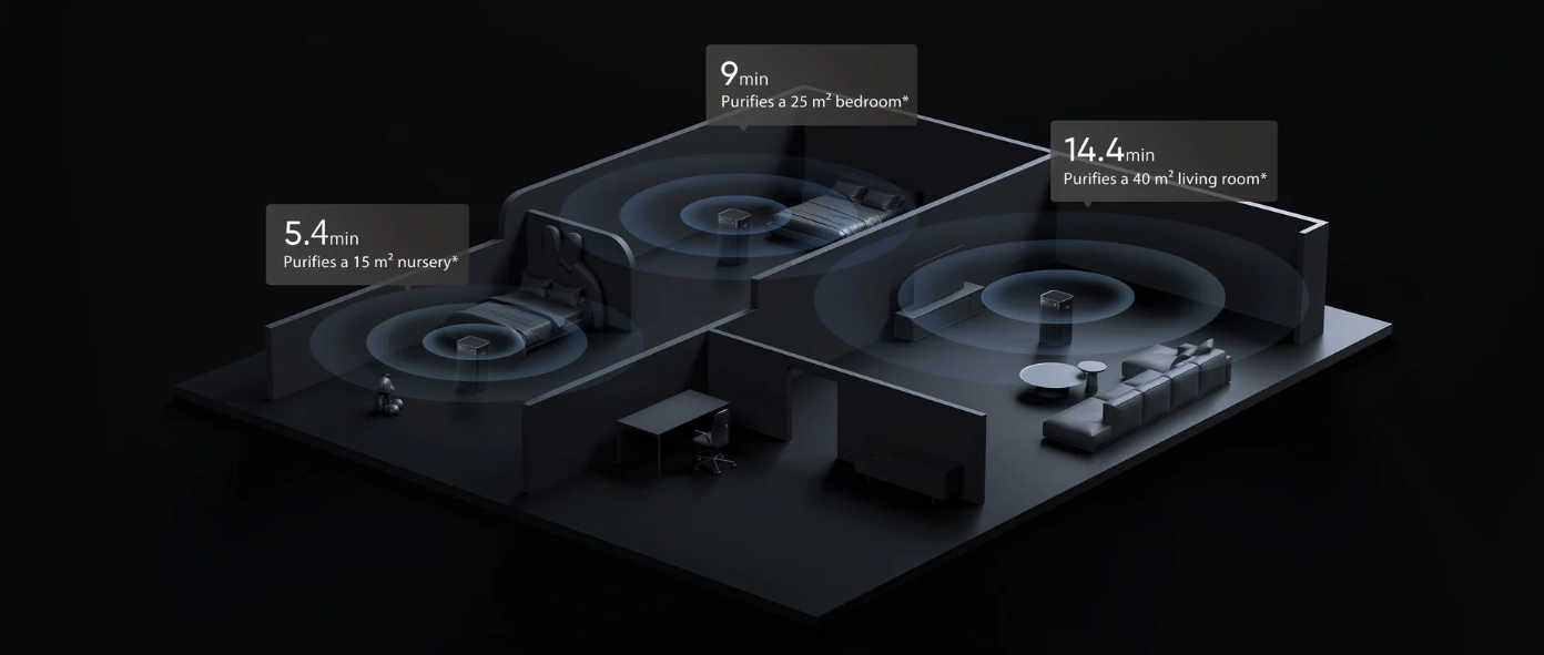 Với khả năng làm mới không khí phòng khách chỉ trong 14,4 phút, CADR hạt lên đến 400 m³/h, Smartmi 3 phù hợp cho phòng có diện tích từ 28–48 m², đáp ứng hoàn hảo nhu cầu sử dụng trong căn hộ, nhà phố, studio và văn phòng làm việc.