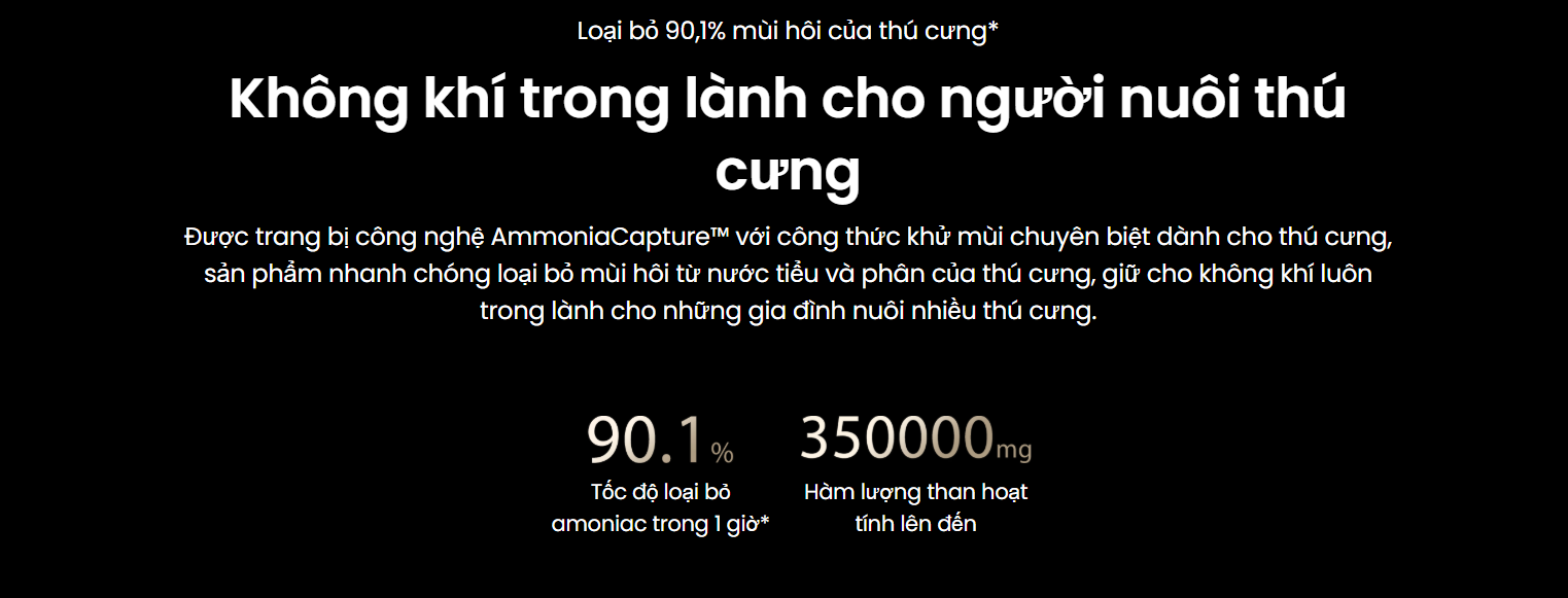 | Khử mùi thú cưng | Rất mạnh – 90,1% amoniac | Trung bình | Trung bình | Tốt | Tốt | ||||||