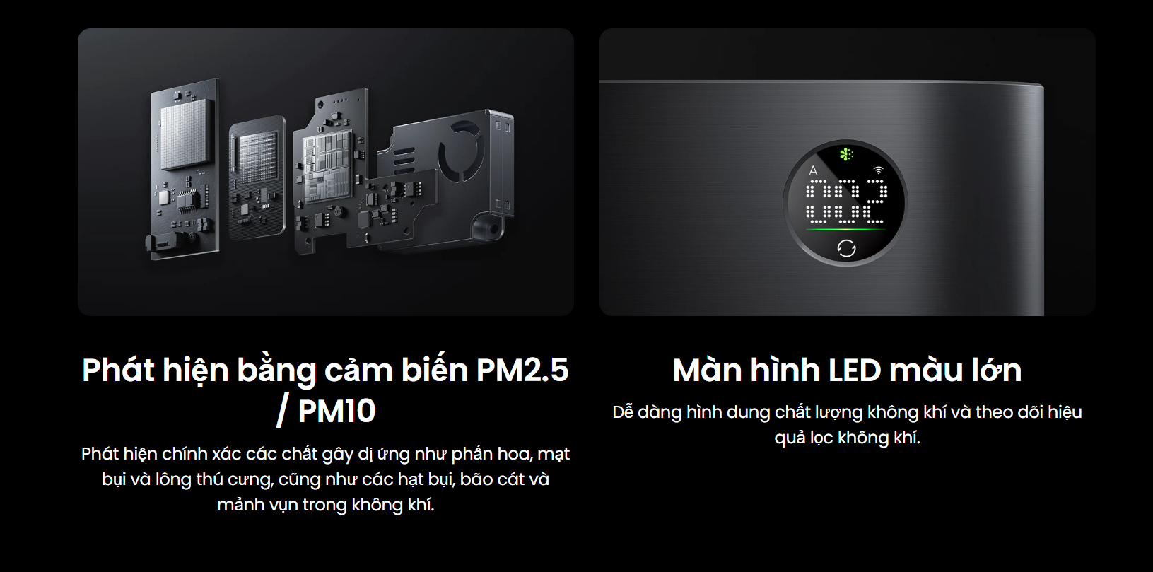 Kết hợp với màn hình LED màu lớn, người dùng có thể dễ dàng quan sát và kiểm soát chất lượng không khí trong nhà theo thời gian thực.