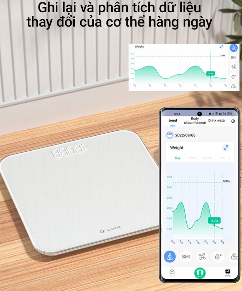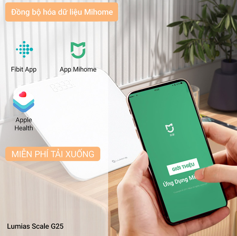 Cân điện tử Lumias Scale G25 có khả năng kết nối Bluetooth với ứng dụng MiHome trên điện thoại thông minh, cho phép truyền dữ liệu đo lường một cách tự động và nhanh chóng. Khi bạn bước lên cân, các chỉ số cơ thể sẽ được gửi ngay đến ứng dụng MiHome, ứng dụng ghi chép các chỉ số, cung cấp các biểu đồ và phân tích chi tiết, giúp bạn dễ dàng theo dõi và hiểu rõ hơn về tình trạng sức khỏe của mình. Từ đó, bạn có thể điều chỉnh chế độ ăn uống và lối sống để đạt được mục tiêu sức khỏe mong muốn.