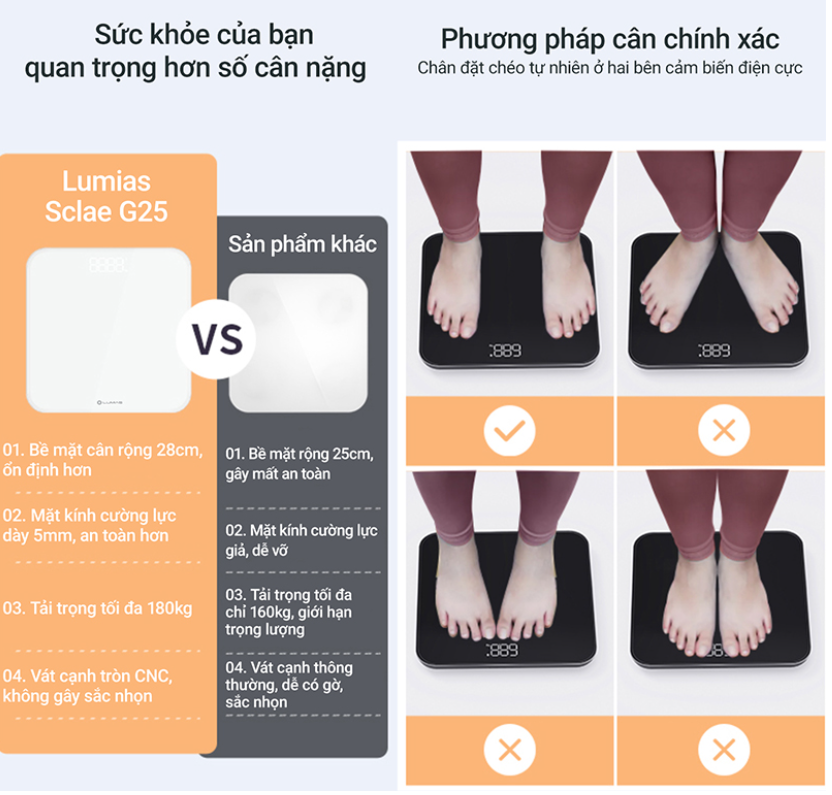 Cân điện tử Scale G25 - Công nghệ Step-On tự động bật khi bước lên