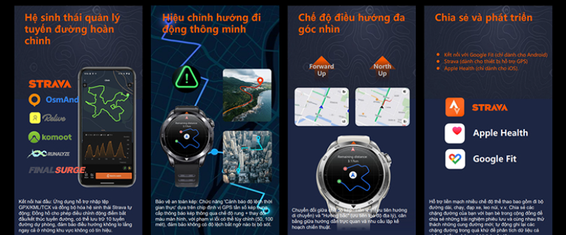 Nhờ hệ sinh thái quản lý tuyến đường hoàn chỉnh, đồng hồ thông minh GS Pro2 cho phép bạn lên kế hoạch, lưu trữ tới 10 tuyến đường dự phòng, thực hiện điều chỉnh điểm điểm đặt trực tuyến ngay trên cổ tay. Chức năng cảnh báo độ lệch thời gian thực dựa trên chip định vị GPS tốc độ kép, sẽ thông báo cho bạn bằng cả rung và thay đổi màu màn hình nếu bạn đi chệch khỏi lộ trình đã định (với phạm vi lệch từ 50 đến 100 mét), giúp bạn luôn đi đúng hướng dù ở những khu vực không có tín hiệu.