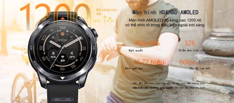 Màn hình 1.43 inch Amoled 466466, độ sáng tối đa 1200nits