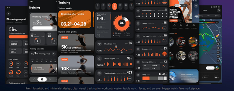 MibroFit cung cấp một giao diện người dùng gọn gàng, hiện đại, cho phép bạn theo dõi dữ liệu tập luyện một cách rõ ràng, trực quan. Từ các báo cáo huấn luyện chi tiết, lịch trình tập luyện hàng tuần, cho đến việc giám sát các chỉ số sức khỏe quan trọng như nhịp tim, nồng độ oxy trong máu, chất lượng giấc ngủ, hay mức độ căng thẳng – tất cả đều được thiết kế khoa học, dễ hiểu. Thiết kế tối giản giúp bạn dễ dàng điều hướng và nắm bắt thông tin cần thiết mà không bị xao nhãng.