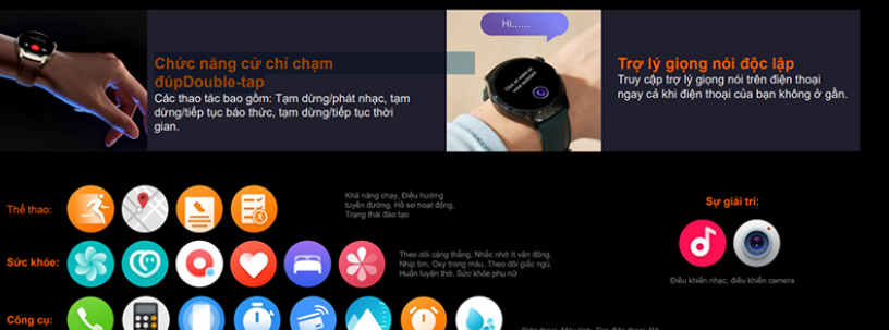 Đồng hồ Mibro GS Pro 2 được trang bị chức năng cử chỉ chạm đúp (Double-tap) cực kỳ thông minh, cho phép bạn thực hiện các thao tác quan trọng tức thì chỉ bằng một cú chạm đúp đơn giản trên cổ tay. Dù bạn đang luyện tập hăng say hay bận rộn với công việc, bạn có thể dễ dàng tạm dừng hoặc tiếp tục phát nhạc, tắt/bật báo thức, hay tạm dừng/tiếp tục bộ đếm thời gian mà không cần phải chạm vào màn hình hay tìm kiếm nút vật lý. Khả năng tương tác nhanh chóng kết hợp trợ lý giọng nói độc lập dễ dàng truy cập ngay cả khi điện thoại không ở gần cực kỳ trực quan, tiện lợi.