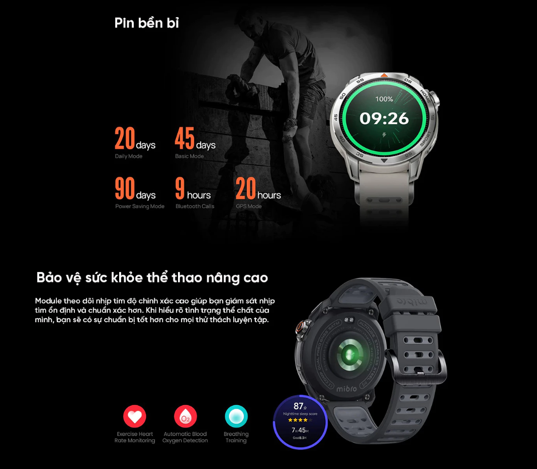 Kiến trúc lõi kép tiết kiệm điện năng kết hợp hệ thống quản lý điện năng thông minh, mang đến hiệu suất cao hơn và tiêu thụ điện năng thấp hơn. Đồng hồ thông minh Mibro GS Pro2 XPAW025 hoạt động liên tục lên đến 20h ở chế độ GPS, ngay cả khi bạn kích hoạt các hệ thống định vị vệ tinh tiên tiến như GPS, BDS, GLONASS, GALILEO, QZSS để theo dõi lộ trình chính xác.