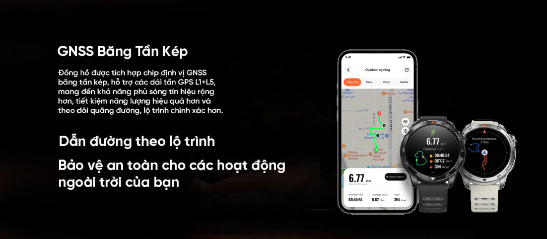 Chip định vị GNSS tần số kép tích hợp, hỗ trợ đồng thời hai băng tần GPS L1+L5, đồng hồ Mibro GS Pro2 PAW025 có vùng phủ sóng tín hiệu rộng hơn rồi theo dõi khoảng cách cùng lộ trình chính xác vượt trội. Nhờ khả năng kết nối 5 hệ thống định vị vệ tinh khác nhau, GS Pro 2 đạt được những cải thiện đáng kể: