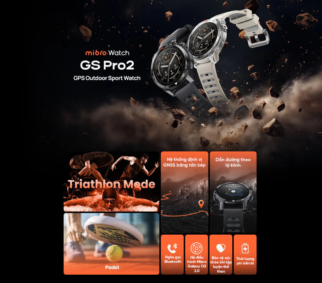 Đồng hồ thông minh Mibro GS Pro2 XPAW025 nổi bật với màn hình AMOLED 1.43 inch 466x466 siêu sáng 1200nits, mang đến trải nghiệm hình ảnh sắc nét. Khả năng điều hướng quỹ đạo vượt trội nhờ hệ thống định vị Dual-FREQ & 5 vệ tinh giúp theo dõi chính xác hơn 150 chế độ thể thao, viên pin ấn tượng 20h ở chế độ GPS. Không chỉ bảo vệ sức khỏe người dùng trong mọi hoàn cảnh, đồng hồ còn tối ưu trải nghiệm nhờ ứng dụng MibroFit tối giản, hơn 300 mặt đồng hồ đa dạng và thao tác nhanh chóng chỉ cần 1 chạm đúp.