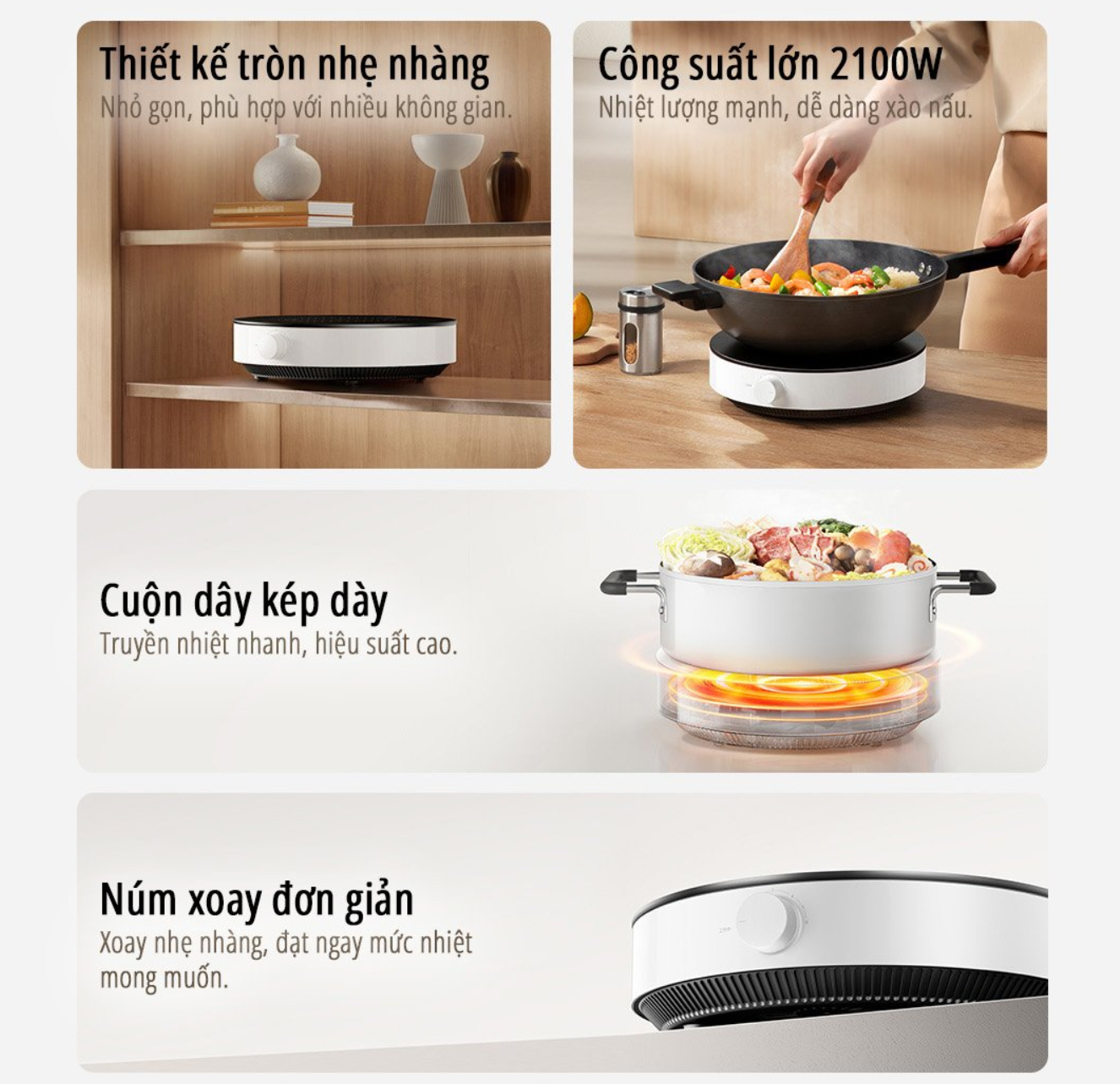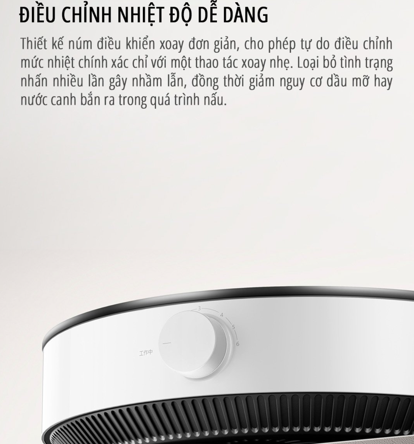 Bếp điện từ N1 Xiaomi Mijia · sở hữu công suất mạnh mẽ 2100W · 6 mức nhiệt độ khác nhau · thiết kế tròn hiện đại · tự ngắt khi không có nồi · bảo vệ điện áp · chống quá nhiệt