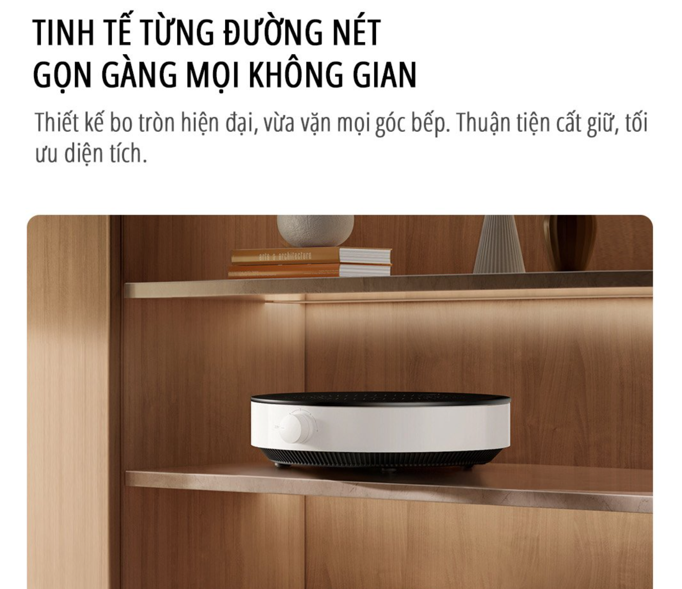 Thân bếp Xiaomi Mijia N1 được thiết kế tròn gọn, không chiếm nhiều diện tích, và có thể cất giữ dễ dàng. Bạn có thể đặt nó trong tủ bếp hay ngăn kéo một cách gọn gàng, tiết kiệm không gian. Thiết kế thông minh này mang lại sự tiện lợi và linh hoạt trong việc sử dụng và cất giữ.
