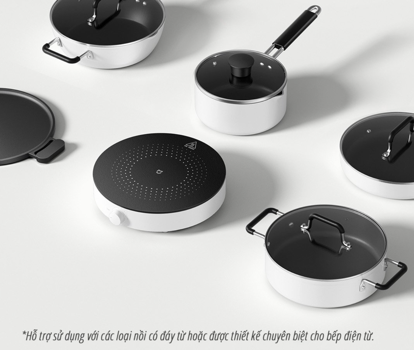 Bếp từ đơn Xiaomi Mijia N1 có thể sử dụng với nhiều loại nồi và chảo khác nhau, đáp ứng nhu cầu nấu nướng đa dạng. Nó phù hợp với chảo, nồi sắt, bình sữa, nồi inox, nồi tráng men, nồi súp, và nhiều loại nồi có đáy từ tính. Bạn có thể thoải mái lựa chọn các món ăn yêu thích và nấu nướng dễ dàng với nhiều công dụng như chiên, xào, hấp, hầm, hay nấu súp. Tính đa năng và khả năng tương thích với nhiều loại nồi là những điểm nổi bật của sản phẩm này.