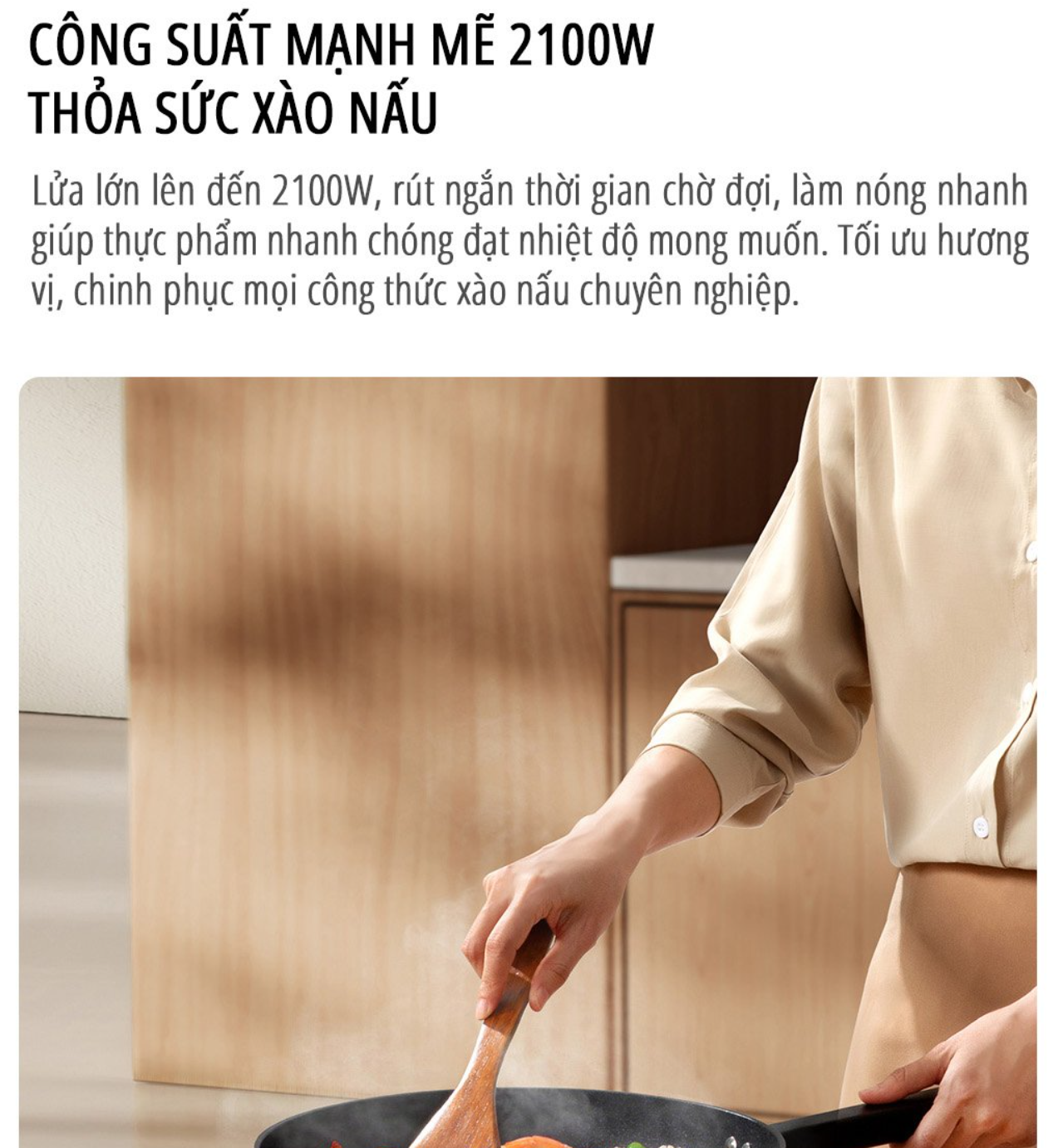 Bếp từ đơn Xiaomi Mijia N1 sở hữu công suất mạnh mẽ 2100W, giúp nấu ăn nhanh chóng và hiệu quả. Với công suất lớn, bạn có thể làm nóng nguyên liệu nhanh chóng, tiết kiệm thời gian chờ đợi. Công suất mạnh mẽ này đảm bảo việc nấu xào trở nên dễ dàng và nhanh hơn, mang lại hiệu quả nấu nướng cao. Trong thử nghiệm ở 25°C, bếp chỉ mất 5 phút để đun sôi 1L nước bằng nồi súp Zhiwu, với thời gian có thể khác nhau tùy loại nồi.
